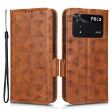 For Samsung Galaxy A13 4G Imprinted Triangle Pattern Anti-scratch PU Leather Case Wallet Foldable Stand Phone Cover - Brown