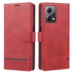 Classic Style Leather Case Magnetic Clasp Wallet Stand Phone Case with Strap for Samsung Galaxy S22+ 5G - Red