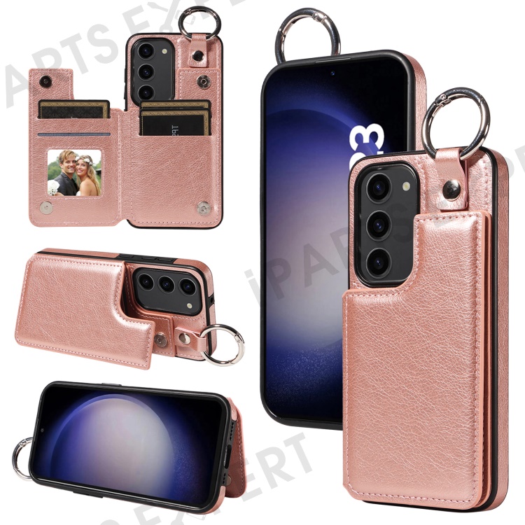 003 For Samsung Galaxy S23 Case Leather+TPU Card Holder Phone Protector Back Cover - Rose Gold