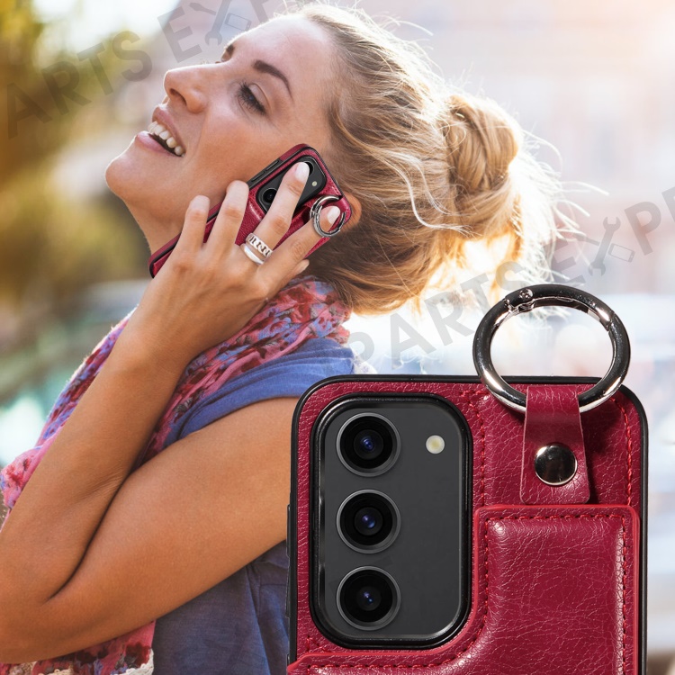003 For Samsung Galaxy S23 Case Leather+TPU Card Holder Phone Protector Back Cover - Wine Red