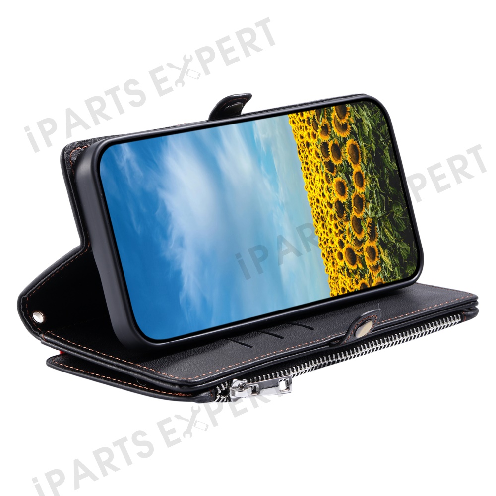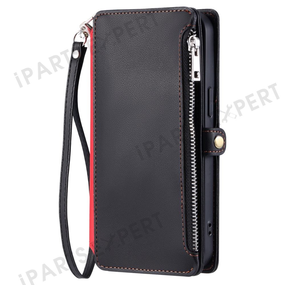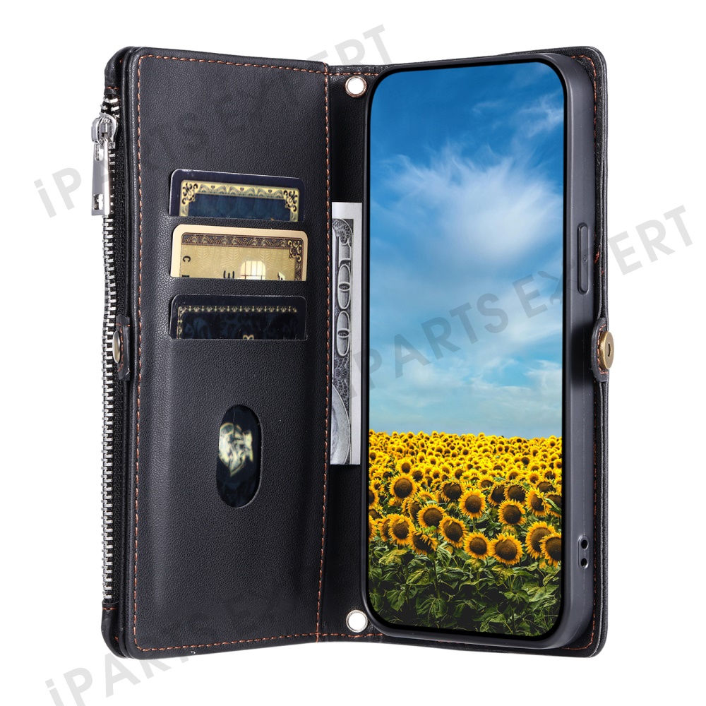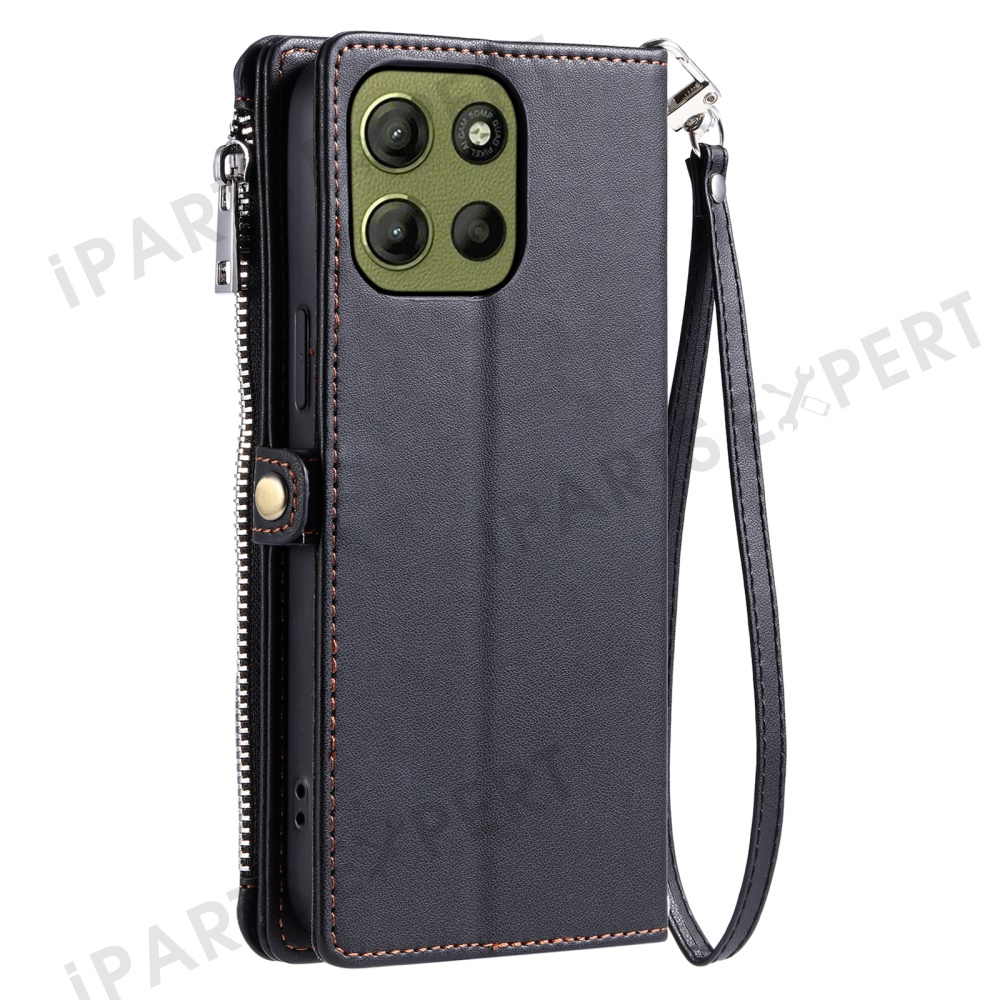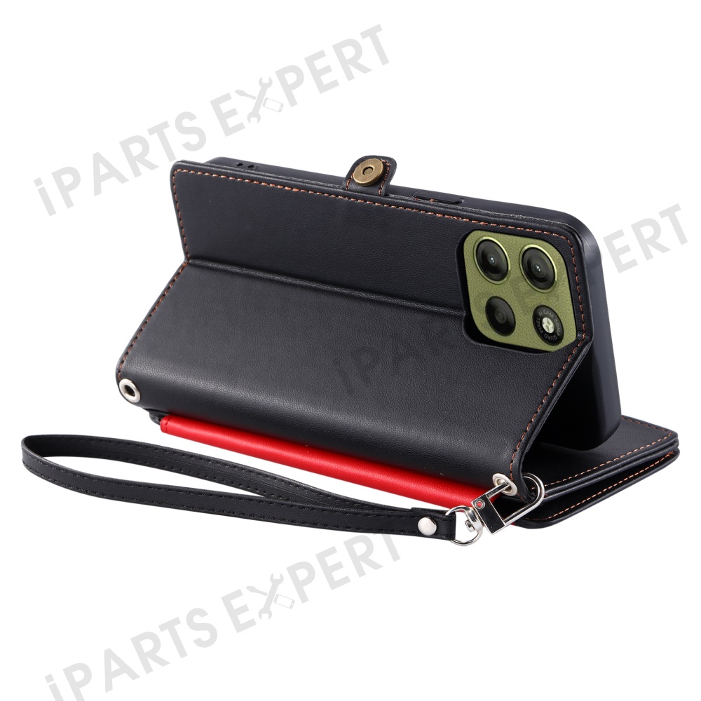 015 Style For Motorola Moto G17 Power 4G / G17 4G / G15 Power 4G / G15 4G Case TPU+PU Leather Wallet Phone Cover with Straps - Black