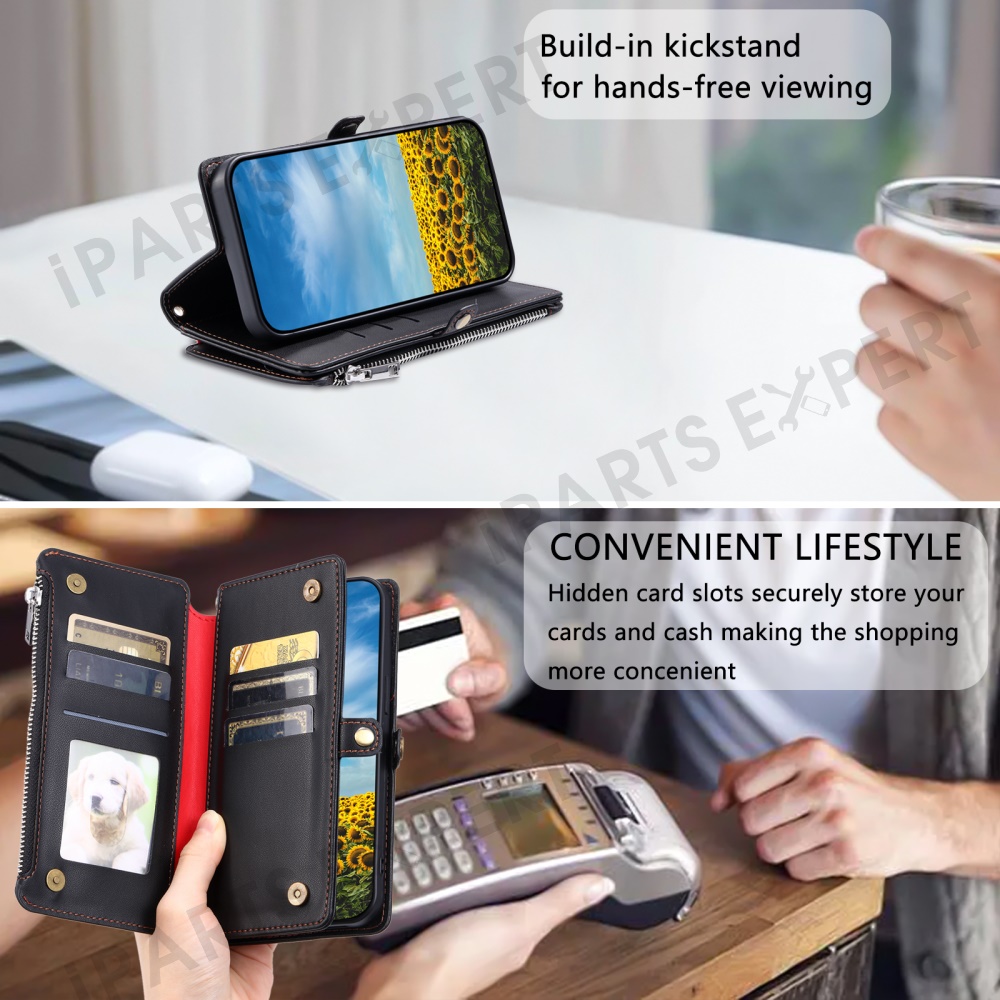 - 【Ample Storage】Features 8 card slots, a side cash compartment, and a zippered wallet pocket, providing ample space for your essentials and keeping everything organized