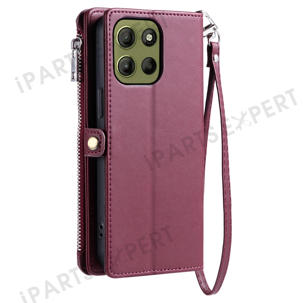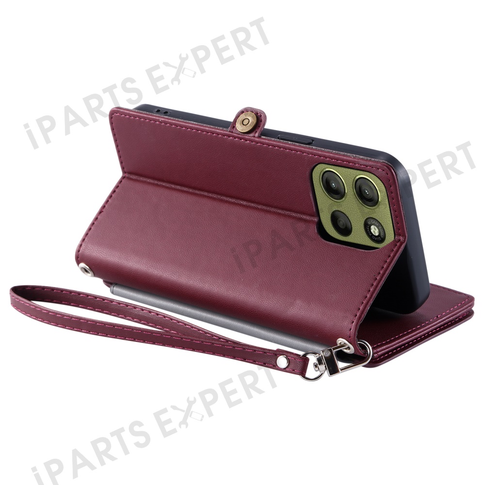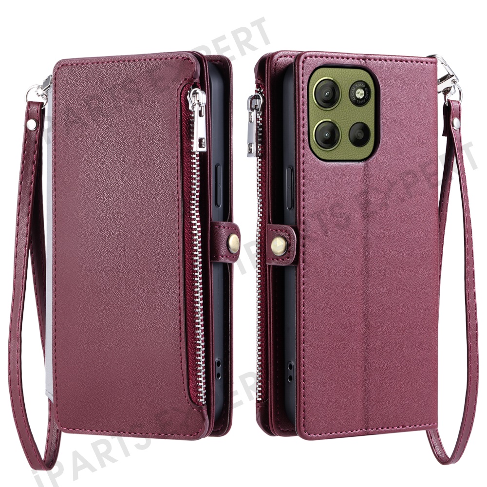 015 Style For Motorola Moto G17 Power 4G / G17 4G / G15 Power 4G / G15 4G Case TPU+PU Leather Wallet Phone Cover with Straps - Wine Red
