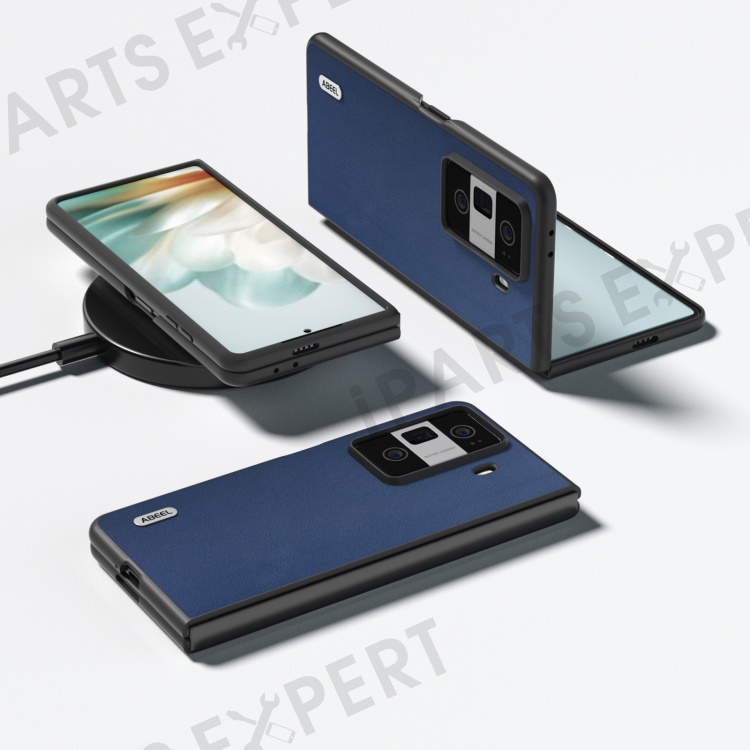 ABEEL For Honor Magic Vs3 5G Case Genuine Cow Leather Coated Hard PC Phone Cover - Blue