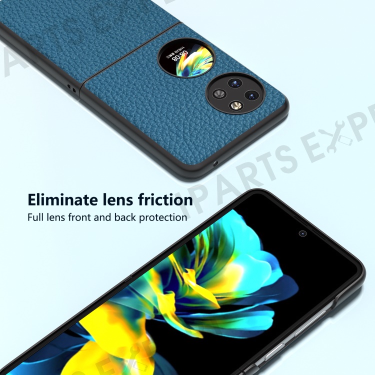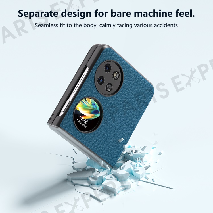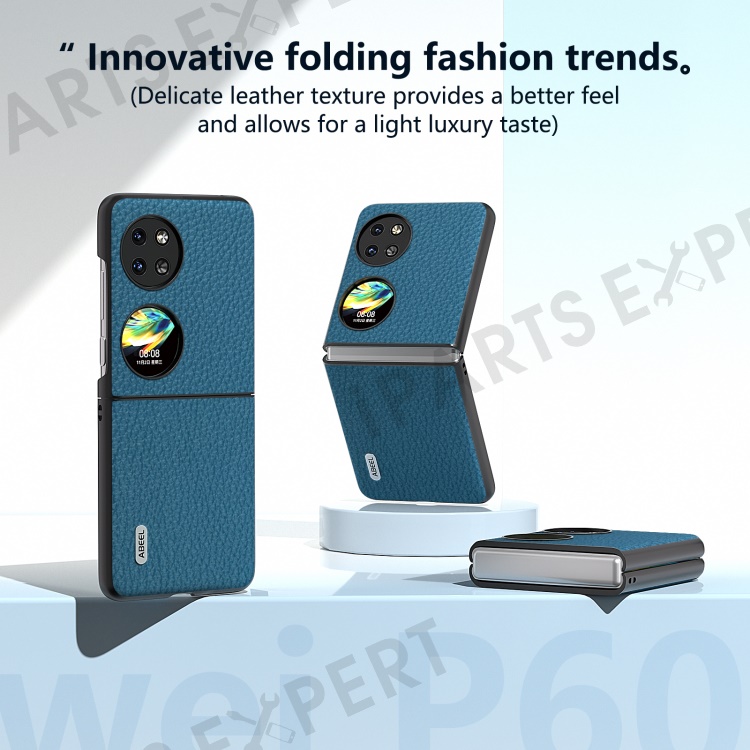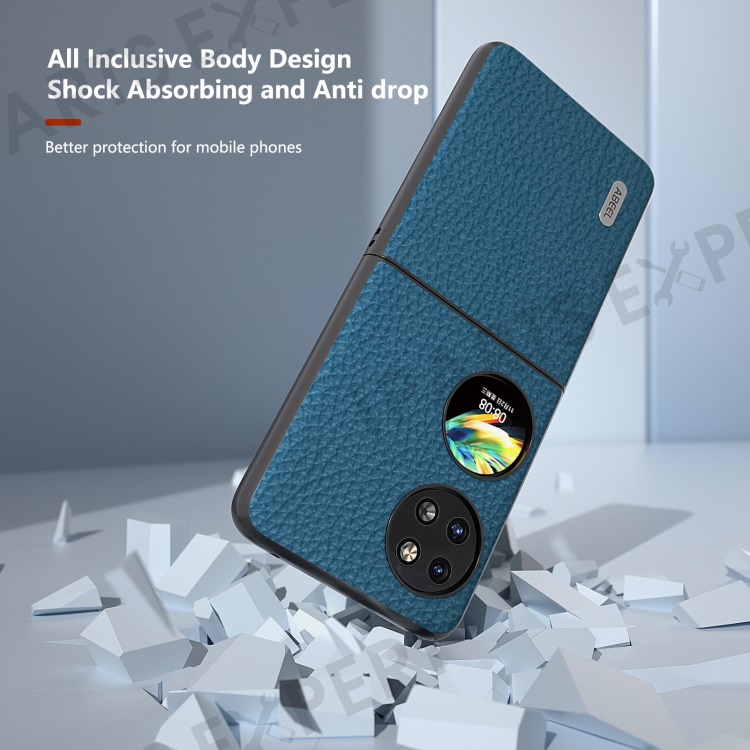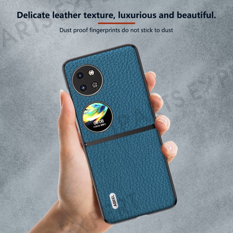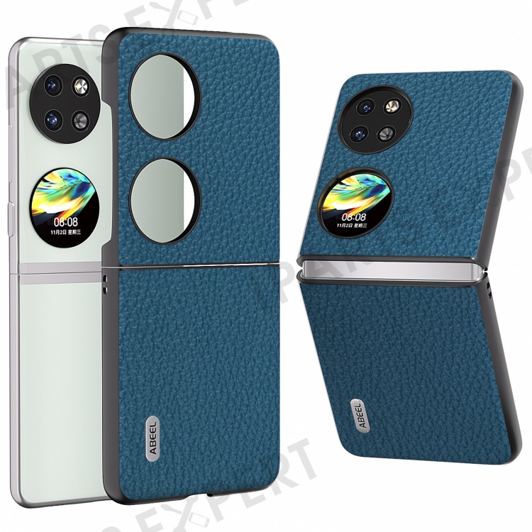 ABEEL For Huawei Pocket 2 Phone Case Genuine Cow Leather with Hard PC Inner Shell Litchi Texture - Blue