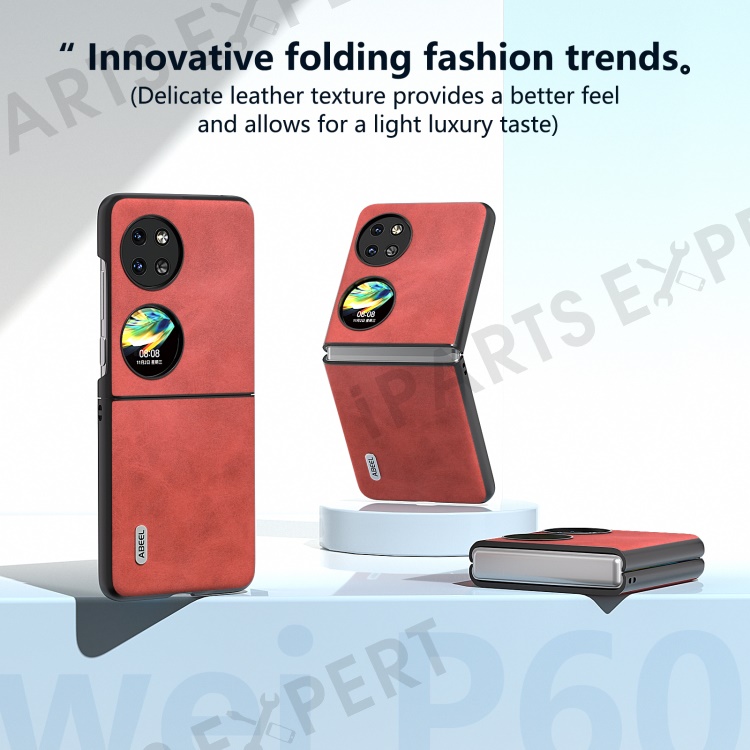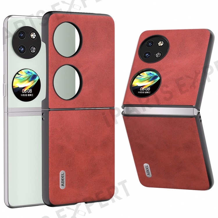 ABEEL For Huawei Pocket 2 Phone Case PU Leather + Hard PC Cover Anti-Shock - Red