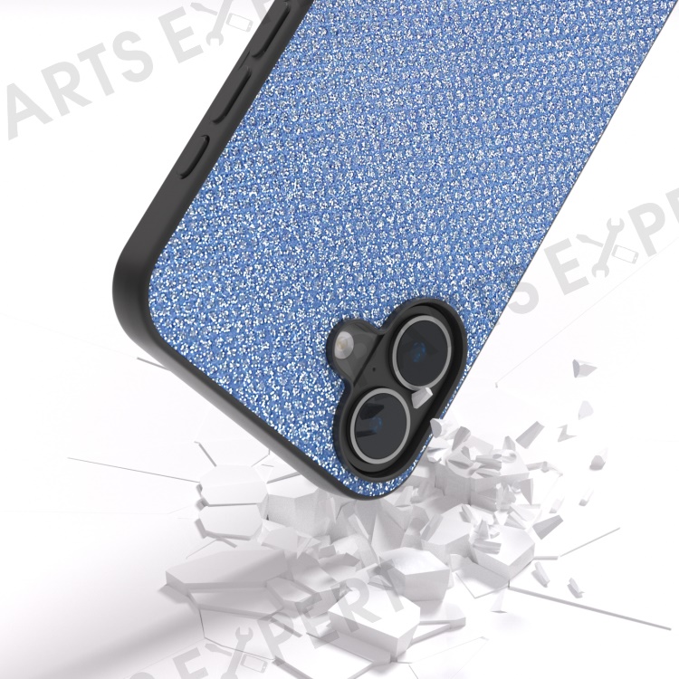 ABEEL For iPhone 16 Plus Case Rhinestone Texture PU+PC+TPU Phone Cover Black Edge - Blue