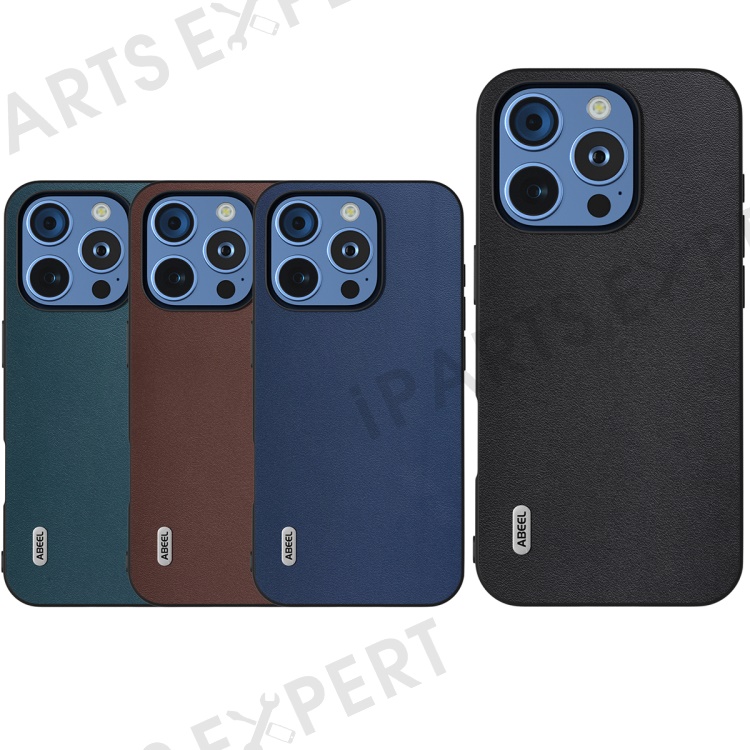 ABEEL For iPhone 16 Pro Case Genuine Cow Leather+PC+TPU Protective Phone Cover - Blue