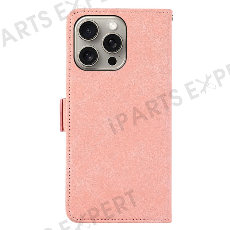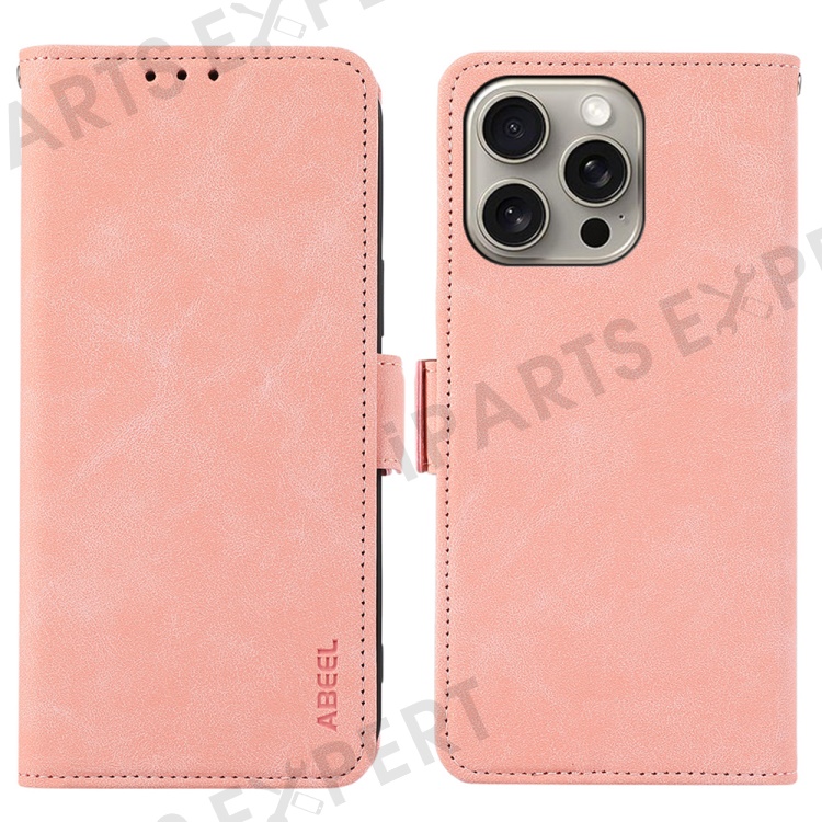 ABEEL For iPhone 16 Pro Case PU Leather Folio Stand View RFID Blocking Phone Cover - Pink