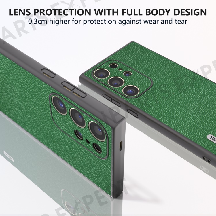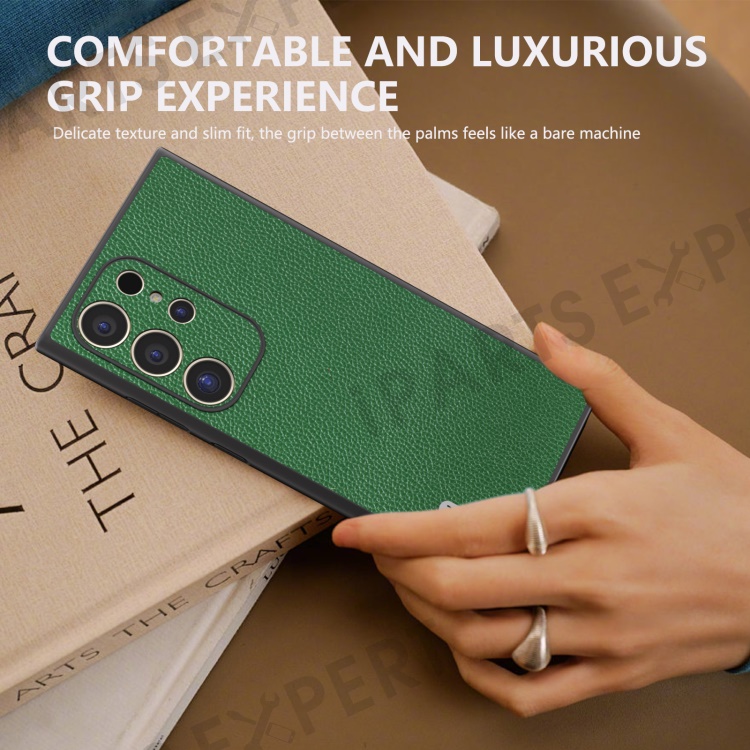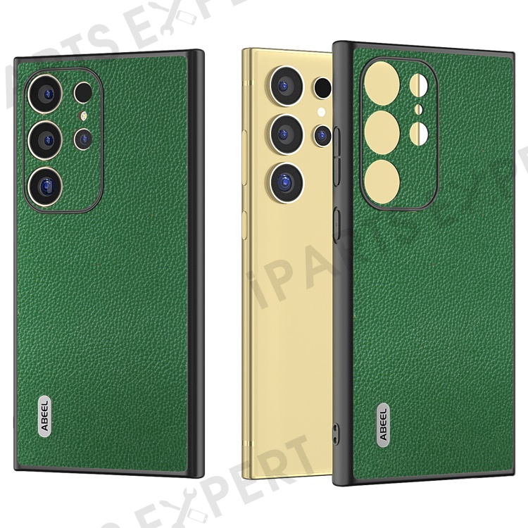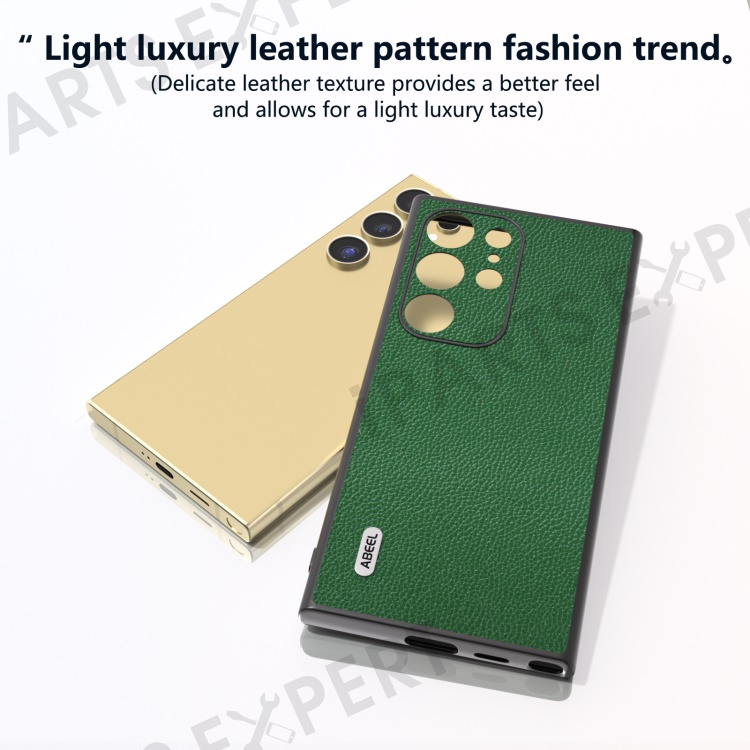 ABEEL For Samsung Galaxy S24 Ultra Case Litchi Texture Genuine Cow Leather+PC+TPU Cover - Green