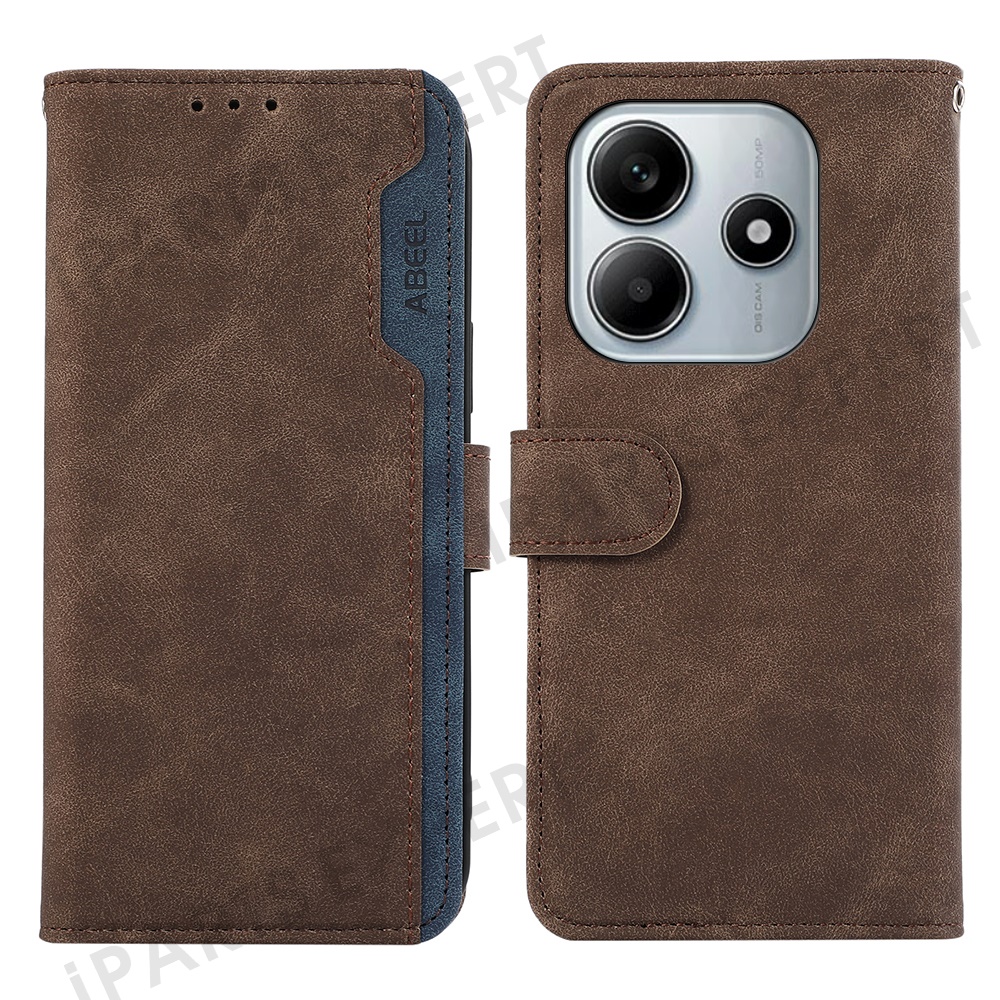 ABEEL For Xiaomi Redmi Note 14 5G Case Color Splicing Leather Flip Phone Cover RFID Blocking - Brown