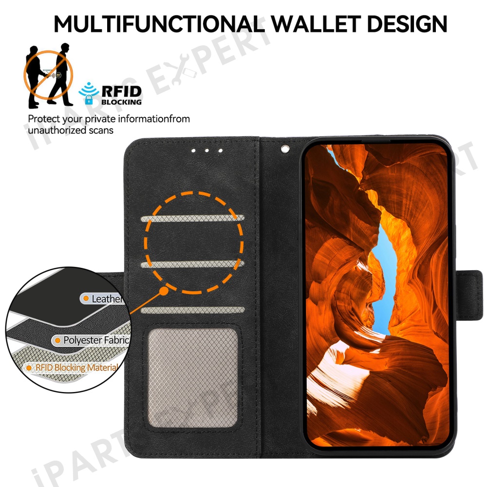 ABEEL For Xiaomi Redmi Note 14 Pro 5G / Poco X7 5G Case PU Leather Folio Stand View RFID Blocking Phone Cover - Black
