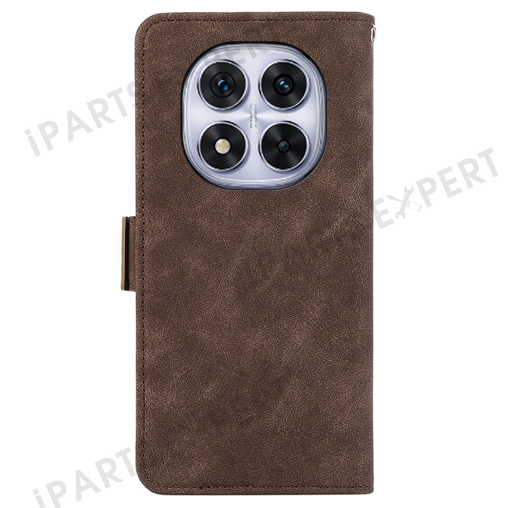 ABEEL For Xiaomi Redmi Note 14 Pro 5G / Poco X7 5G Case PU Leather Folio Stand View RFID Blocking Phone Cover - Brown