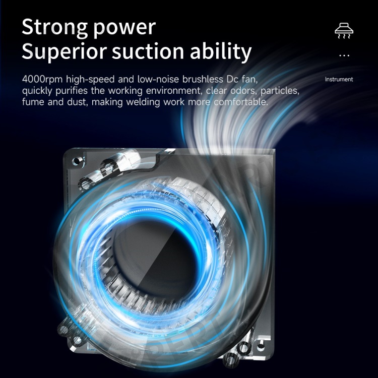 - 【Strong Power Superior Suction Ability】 4000 RPM high-speed and low-noise brushless DC fan, quickly purifies the working environment, clears odors, particles, fumes, and dust, making welding work more comfortable
