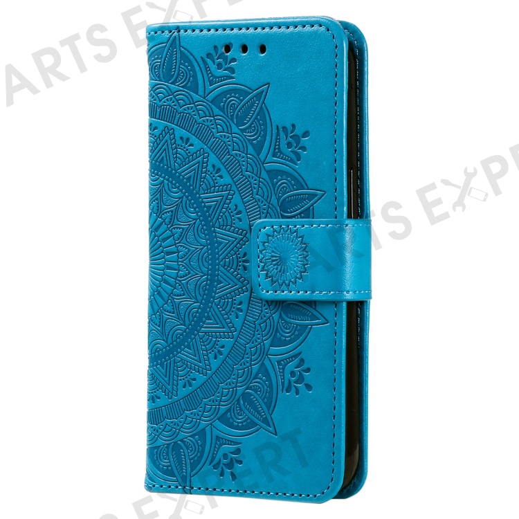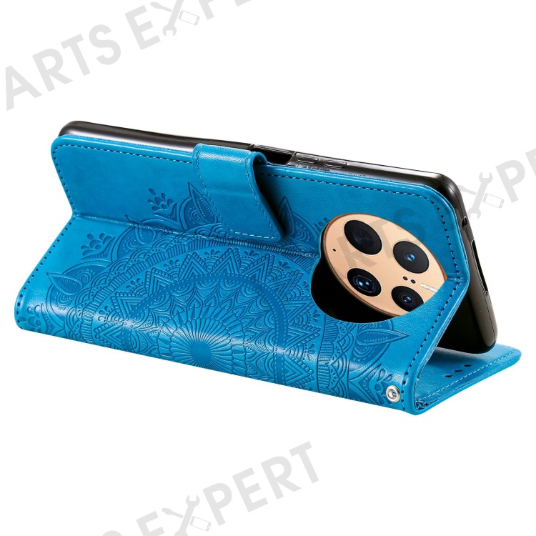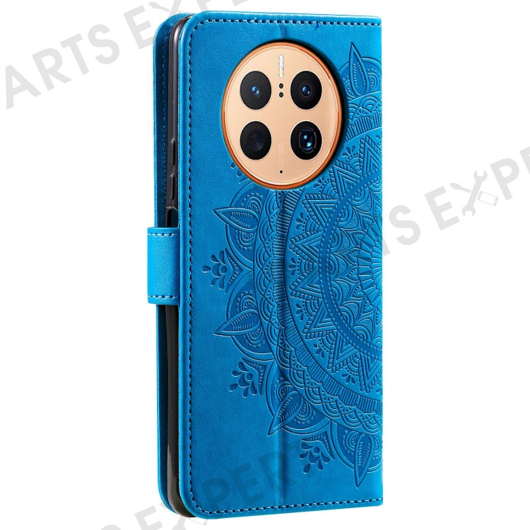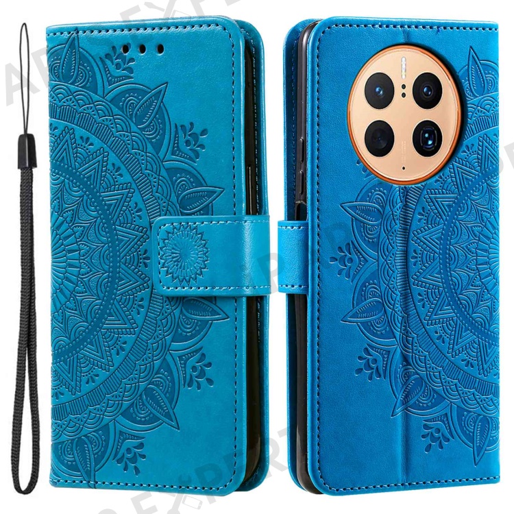 Anti-drop Cell Phone Cover For Huawei Mate 50 Pro 4G, Mandala Flower Pattern Imprinted PU Leather Flip Wallet Case Stand - Blue