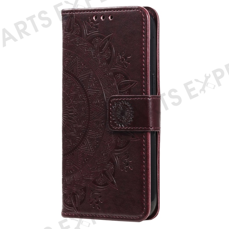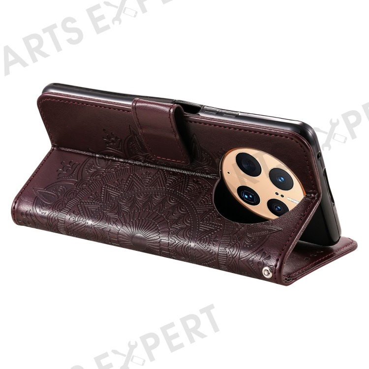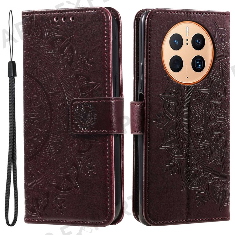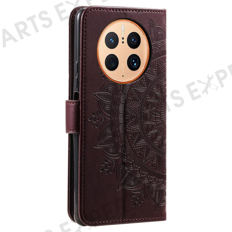 Anti-drop Cell Phone Cover For Huawei Mate 50 Pro 4G, Mandala Flower Pattern Imprinted PU Leather Flip Wallet Case Stand - Brown
