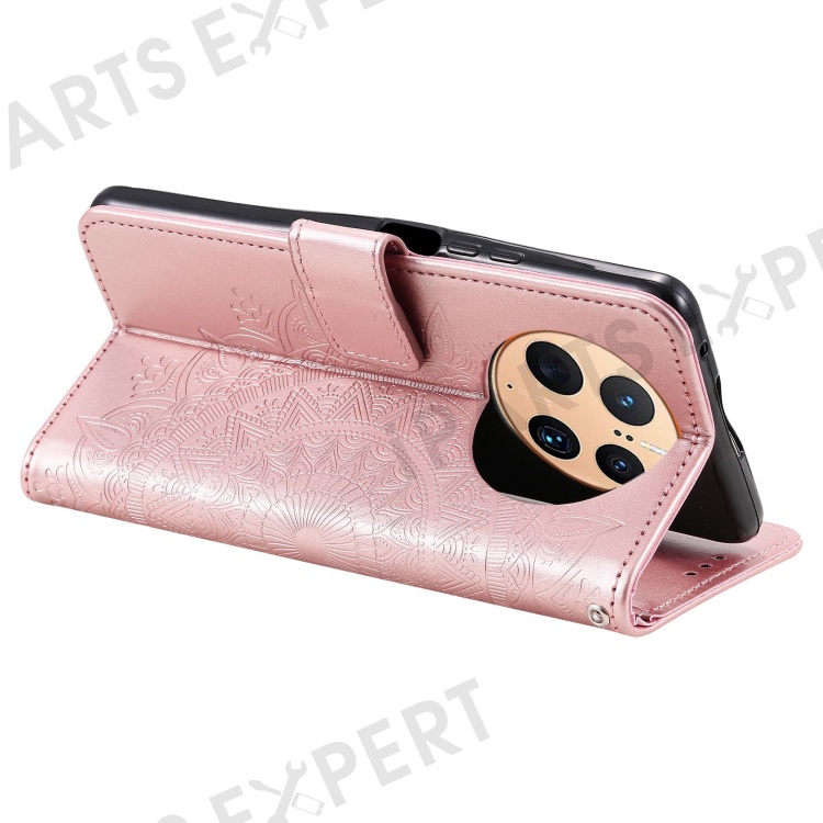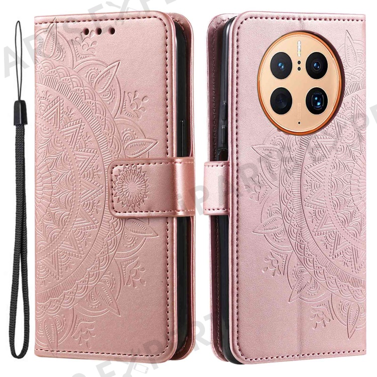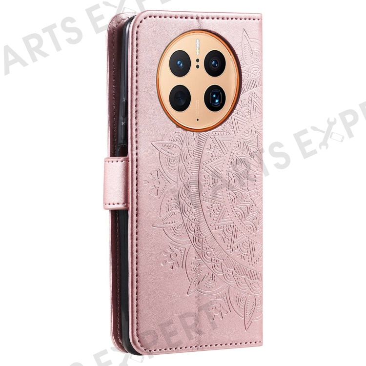 Anti-drop Cell Phone Cover For Huawei Mate 50 Pro 4G, Mandala Flower Pattern Imprinted PU Leather Flip Wallet Case Stand - Rose Gold