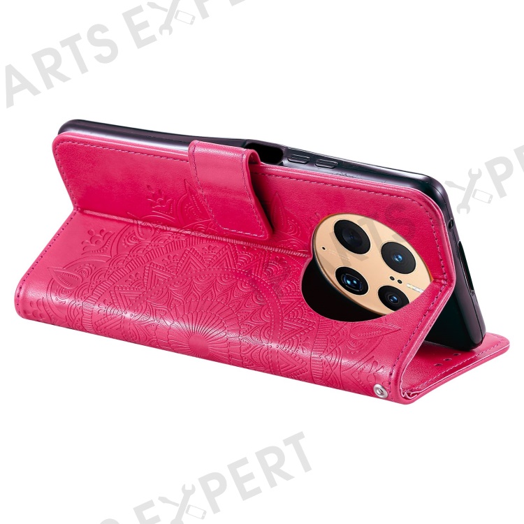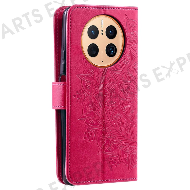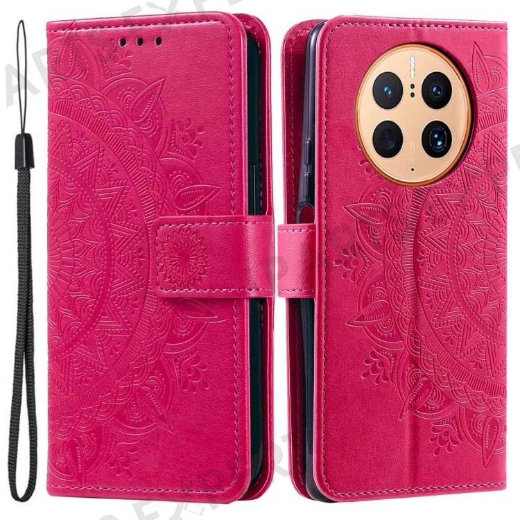 Anti-drop Cell Phone Cover For Huawei Mate 50 Pro 4G, Mandala Flower Pattern Imprinted PU Leather Flip Wallet Case Stand - Rose