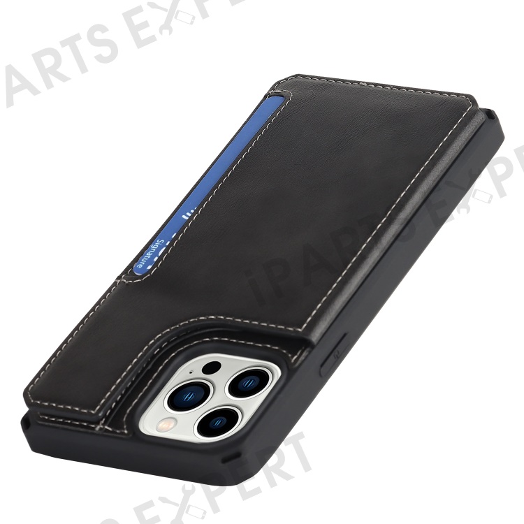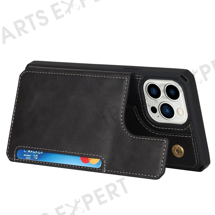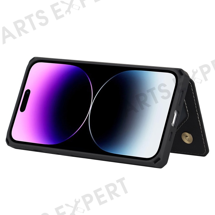 Anti-dust PU Leather Coated TPU Phone Case for iPhone 14 Pro, Magnetic Snap Button Wallet Phone Cover Kickstand Phone Shell - Black