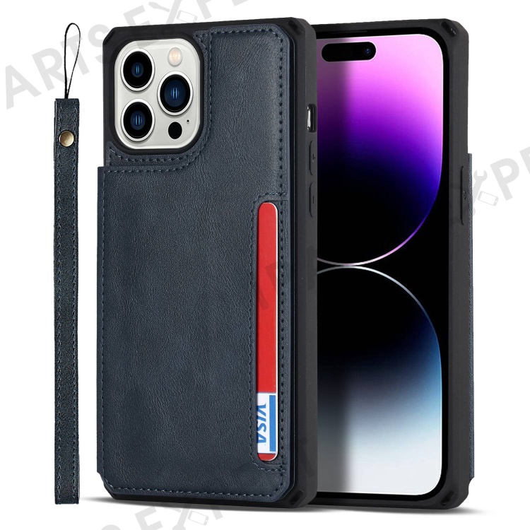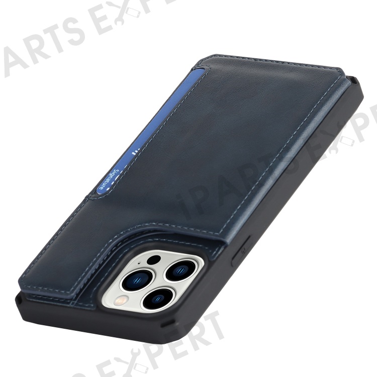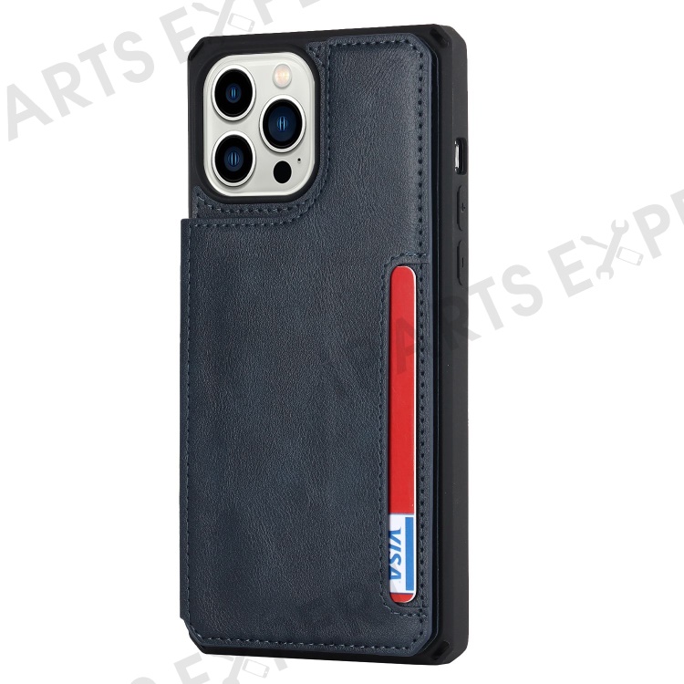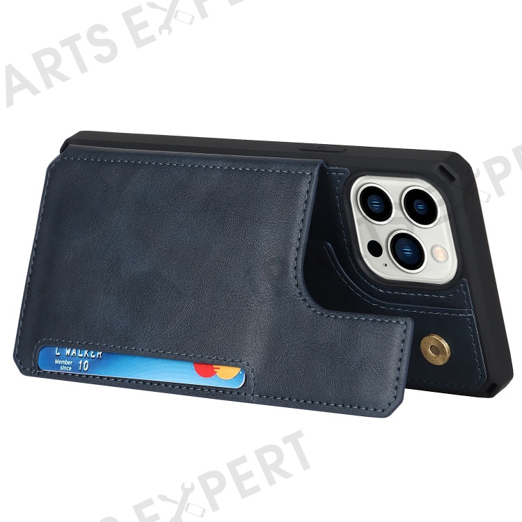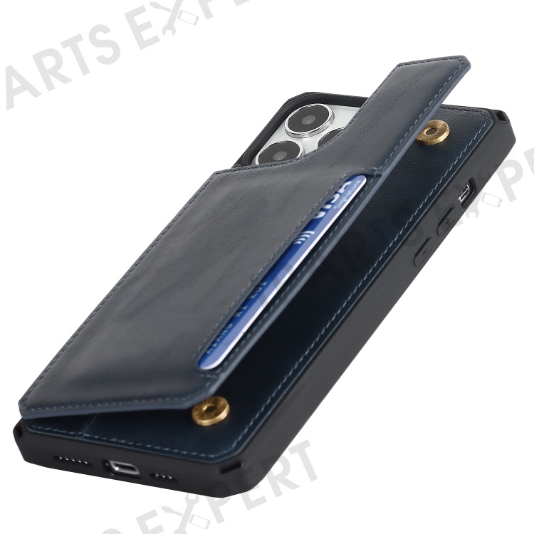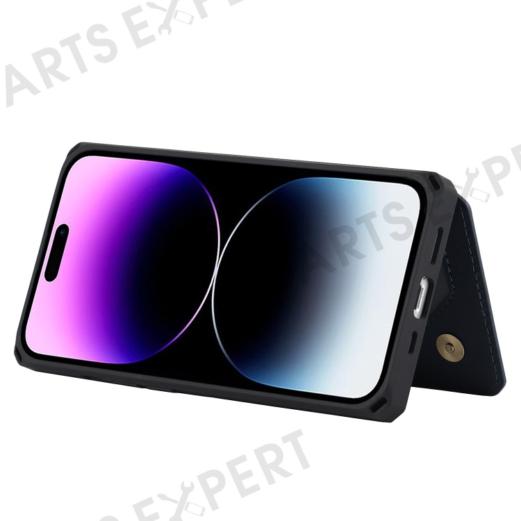 Anti-dust PU Leather Coated TPU Phone Case for iPhone 14 Pro, Magnetic Snap Button Wallet Phone Cover Kickstand Phone Shell - Blue