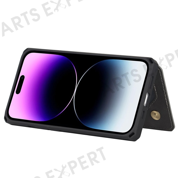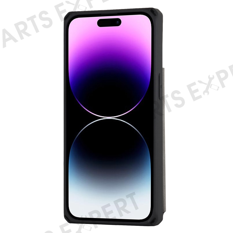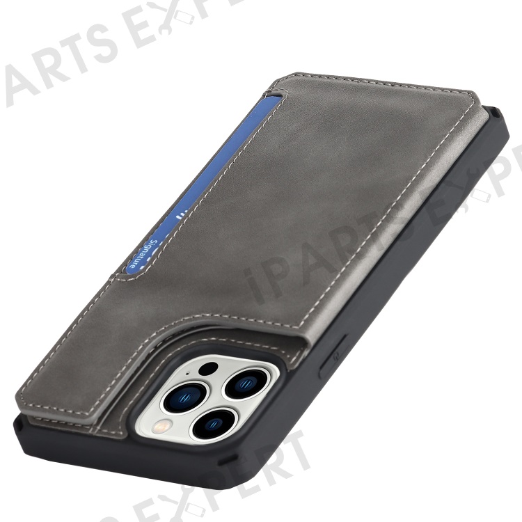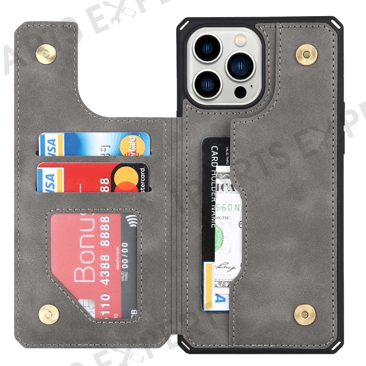 Anti-dust PU Leather Coated TPU Phone Case for iPhone 14 Pro, Magnetic Snap Button Wallet Phone Cover Kickstand Phone Shell - Grey