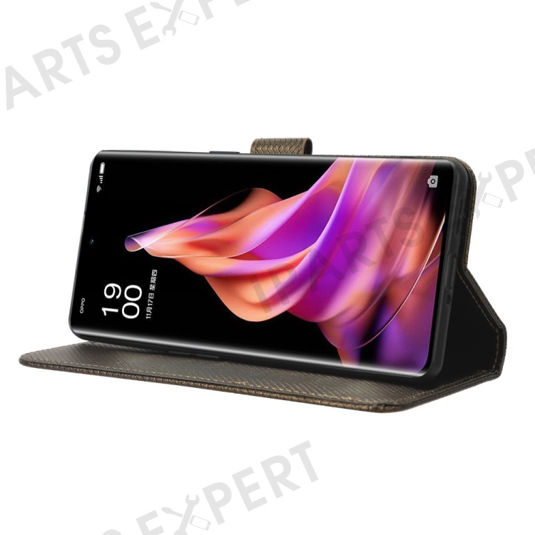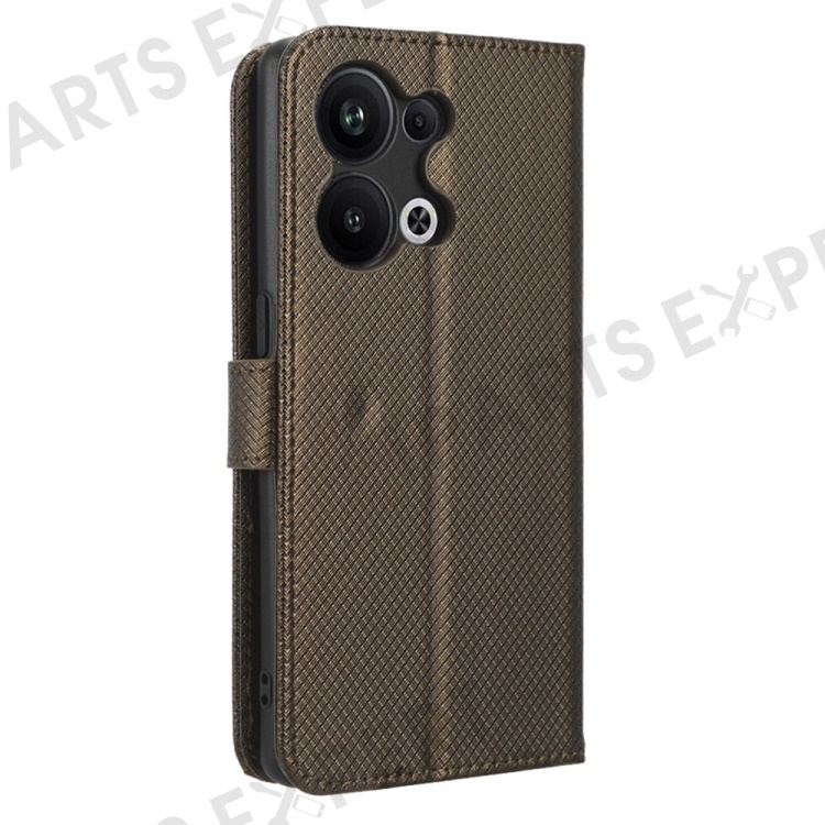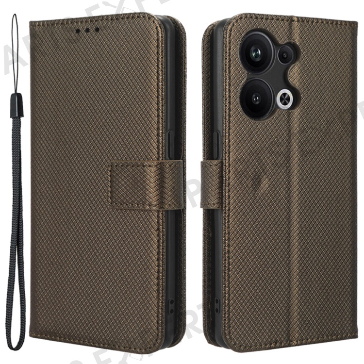 Anti-fall Phone Cover for Oppo Reno9 Pro+ 5G, Magnetic Clasp Diamond Texture PU Leather Anti-scratch Adjustable Stand Wallet Phone Case - Brown
