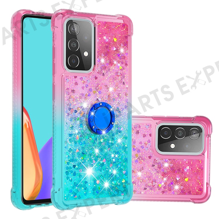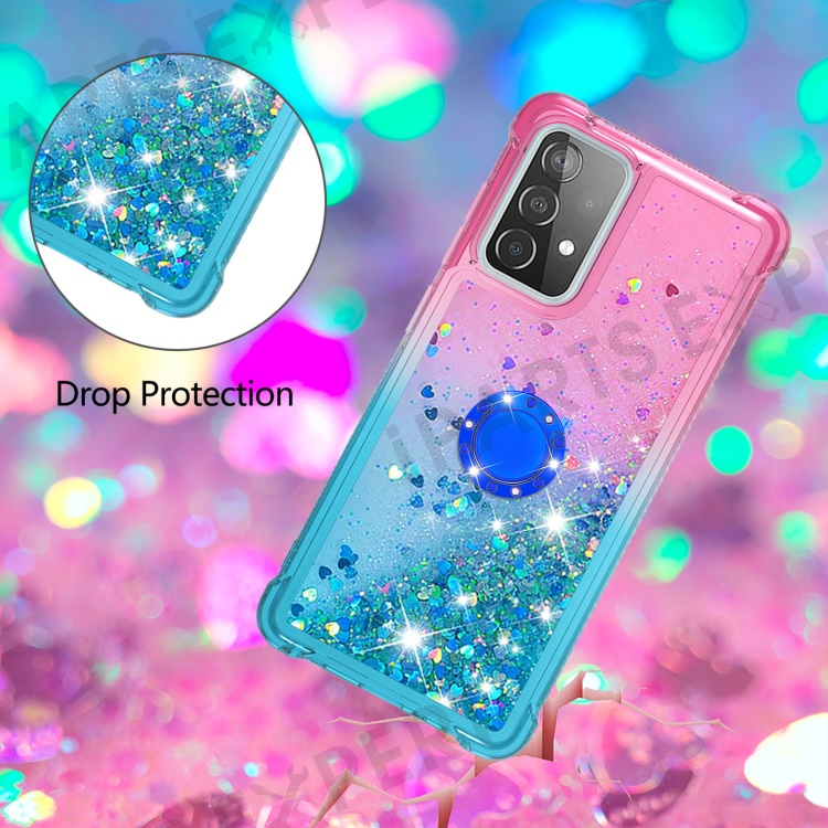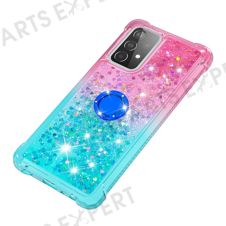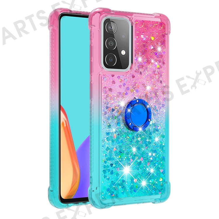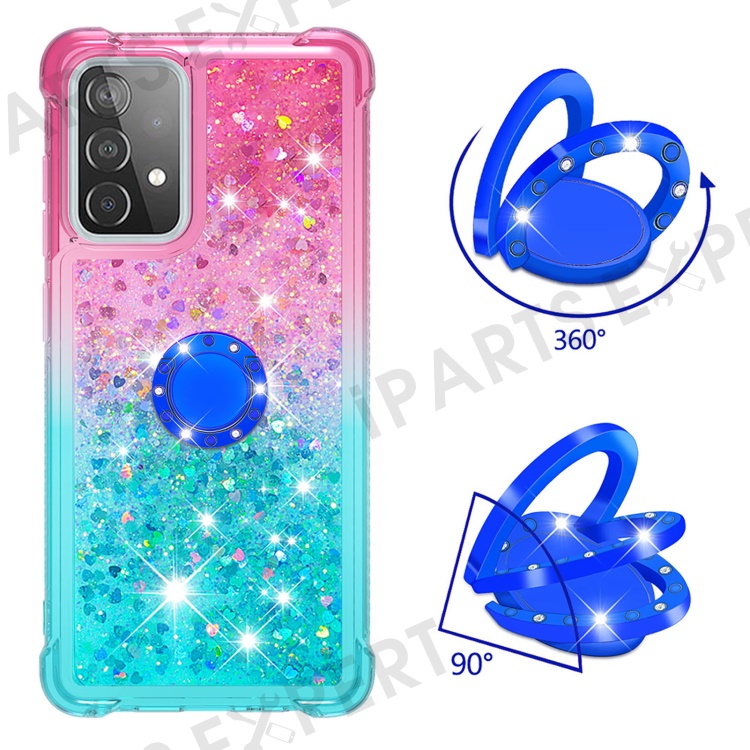 Anti-scratch Gradient Quicksand TPU Shell for Samsung Galaxy A52 4G/5G / A52s 5G with Kickstand - Rose/Cyan