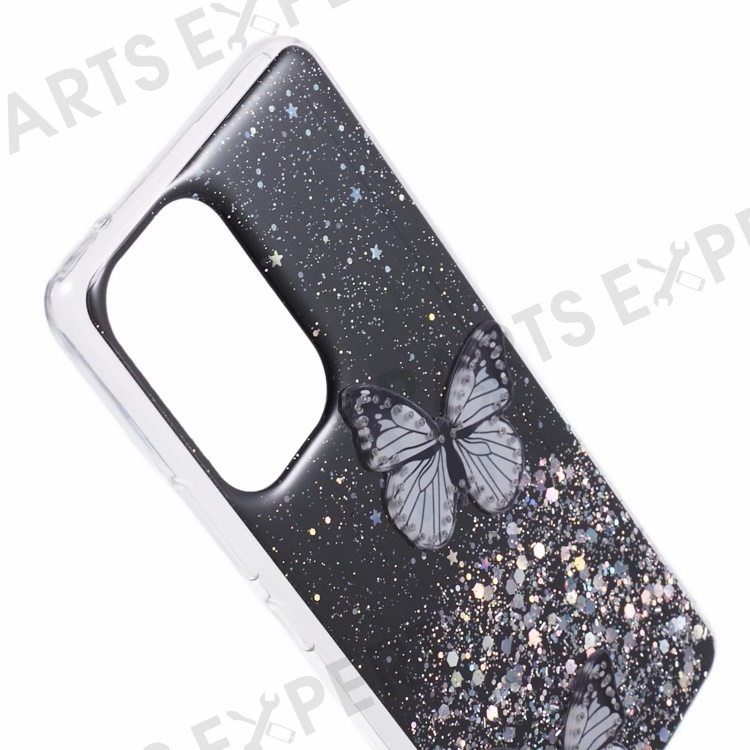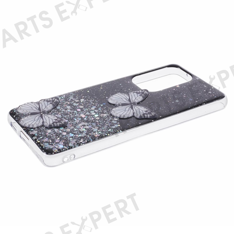 AW Series Case for Samsung Galaxy A23 5G (Global Version) / A23 4G Shell Sparkle Epoxy Butterfly Decor Big Rear Lens Hole Phone Cover - Black