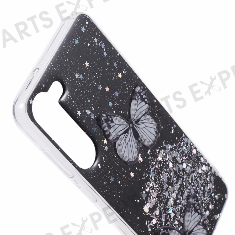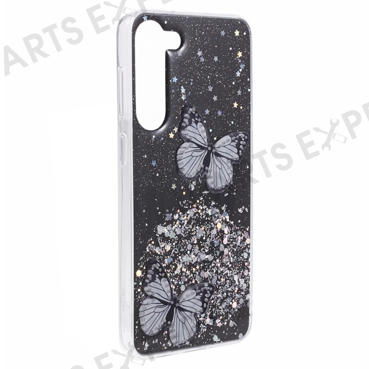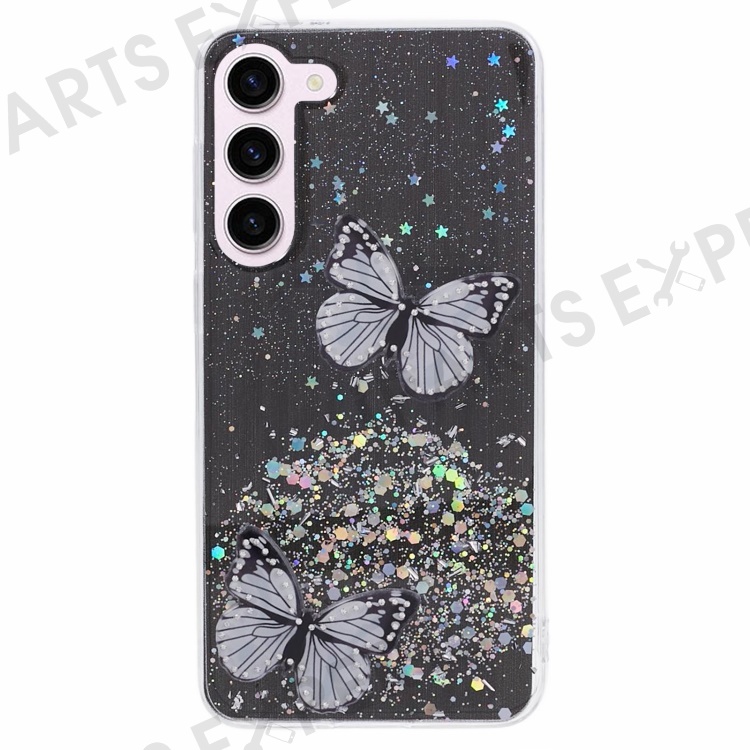 AW Series For Samsung Galaxy S23 Sparkle Epoxy Case TPU+PVC Big Rear Lens Hole Protective Cover - Black