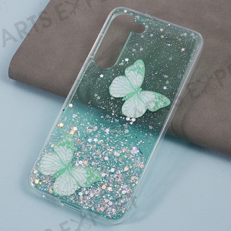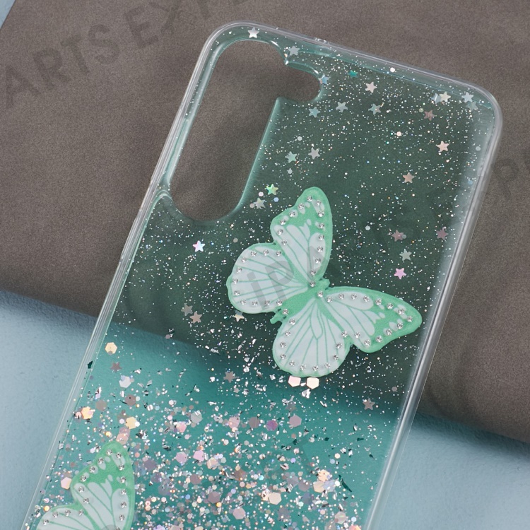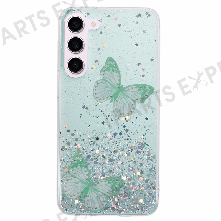 AW Series For Samsung Galaxy S23 Sparkle Epoxy Case TPU+PVC Big Rear Lens Hole Protective Cover - Green