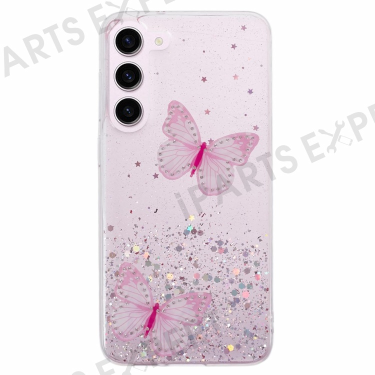 AW Series For Samsung Galaxy S23 Sparkle Epoxy Case TPU+PVC Big Rear Lens Hole Protective Cover - Pink