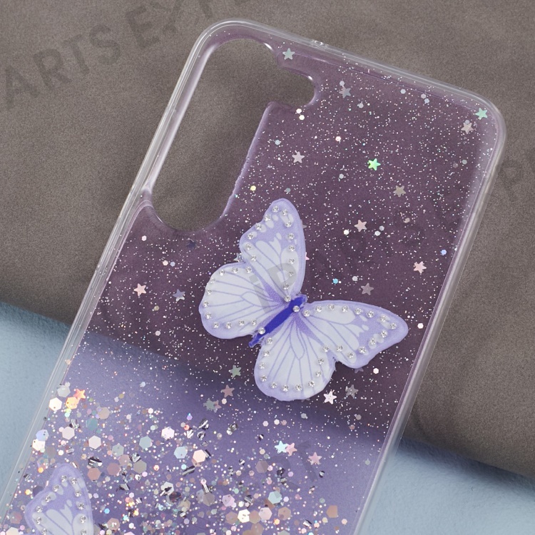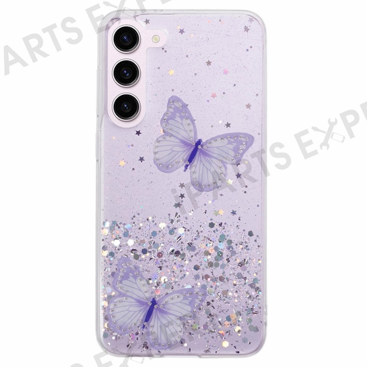 AW Series For Samsung Galaxy S23 Sparkle Epoxy Case TPU+PVC Big Rear Lens Hole Protective Cover - Purple