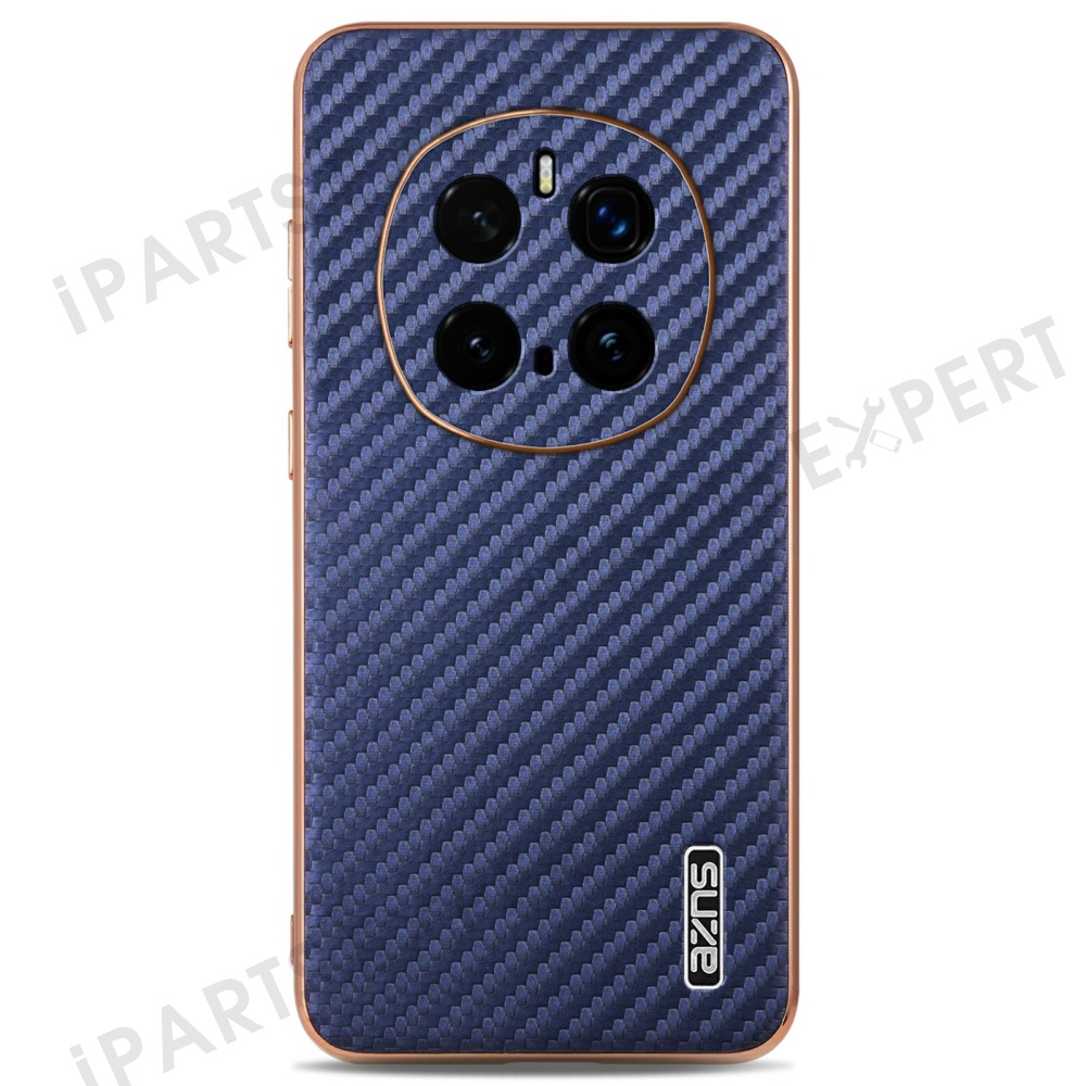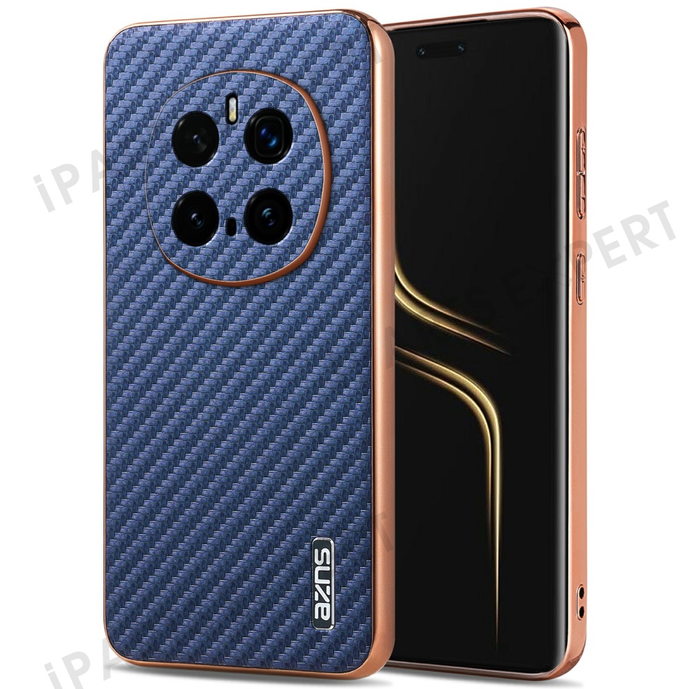 AZNS For Honor Magic7 Pro 5G Case Electroplating Carbon Fiber Texture PU + TPU Phone Cover - Blue