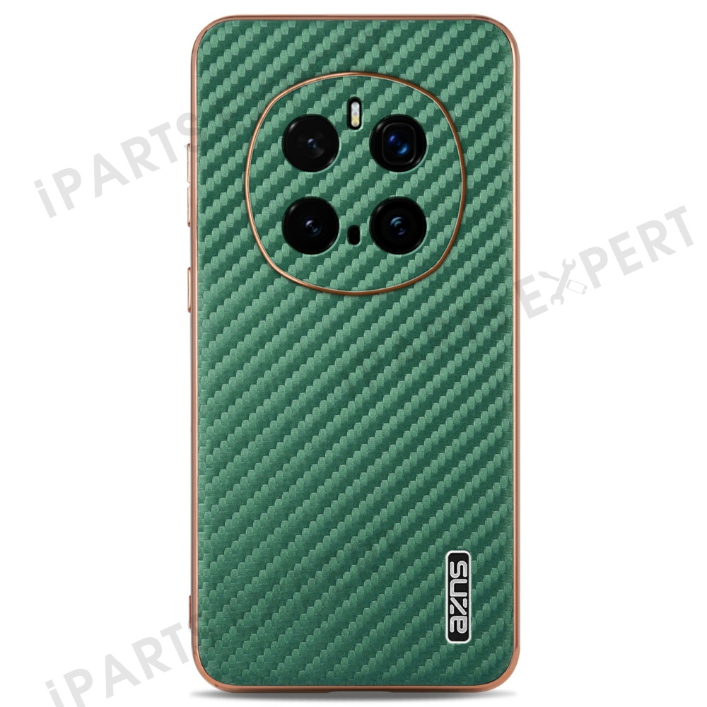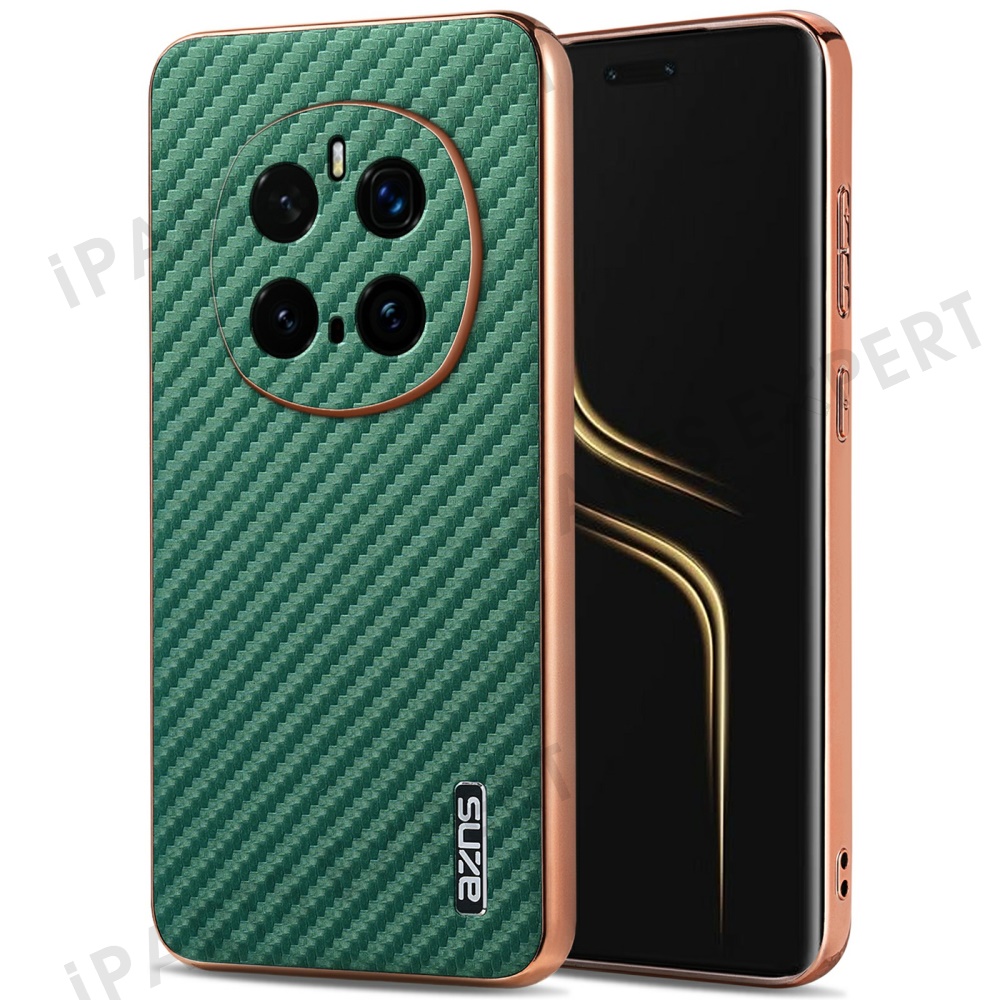 AZNS For Honor Magic7 Pro 5G Case Electroplating Carbon Fiber Texture PU + TPU Phone Cover - Green