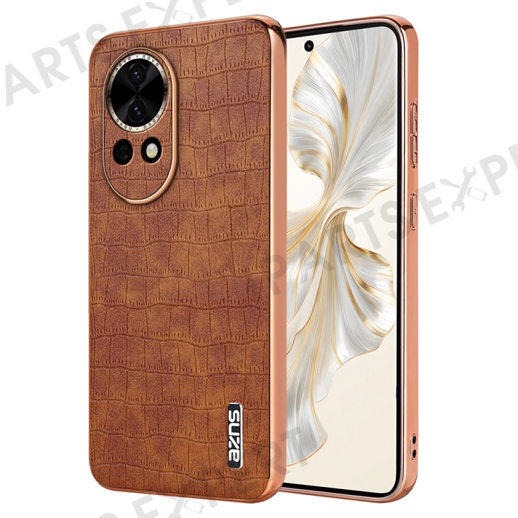 AZNS For Huawei nova 13 5G Case Electroplating Crocodile Texture PU+TPU Phone Cover - Brown