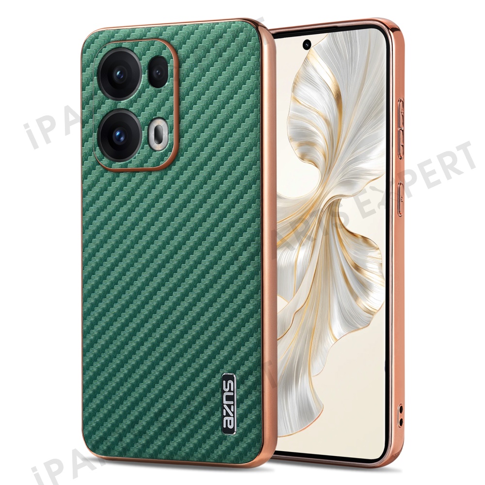AZNS For Oppo Reno13 Pro 5G Case Electroplating Carbon Fiber Texture PU + TPU Phone Cover - Green