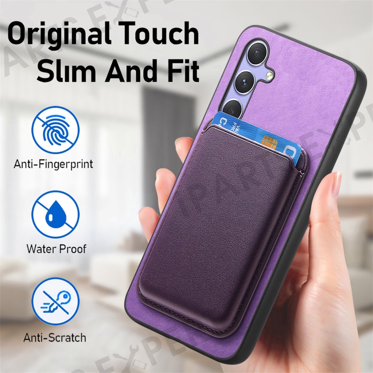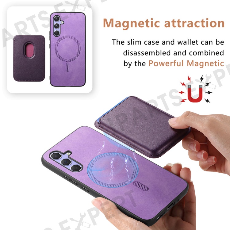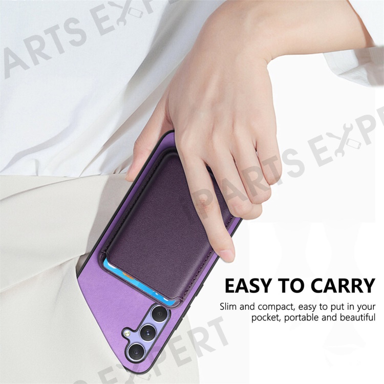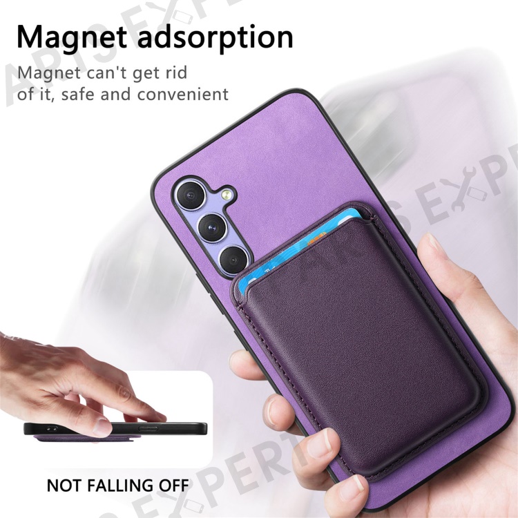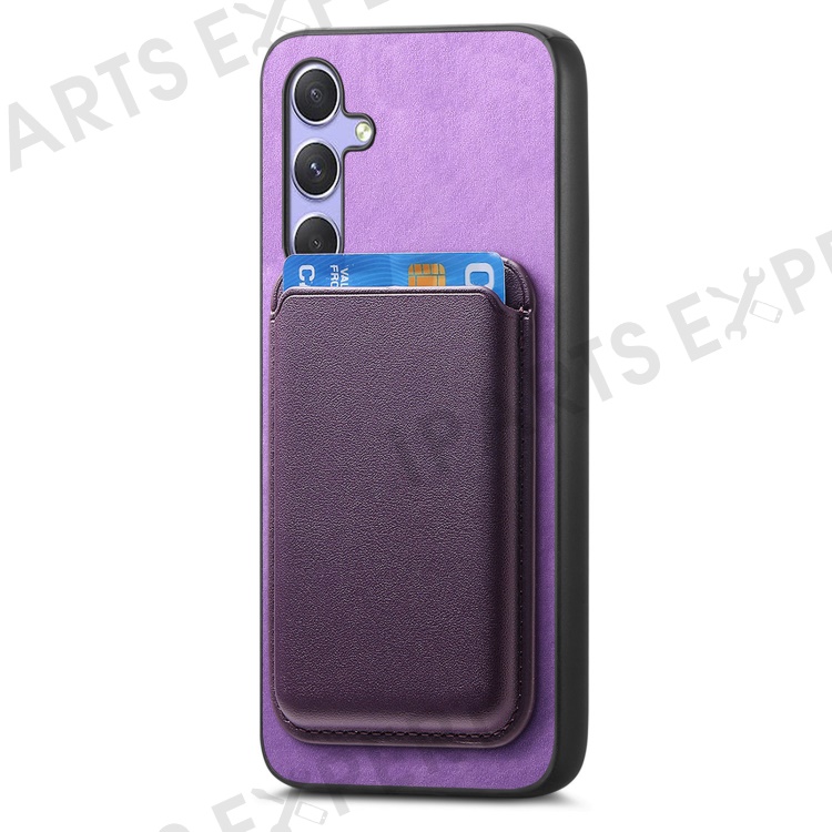 B2 For Samsung Galaxy A54 5G Magnetic Case Card Holder PU Leather+TPU Phone Cover - Purple