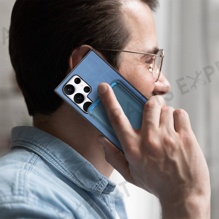 B2 For Samsung Galaxy S23 Ultra Case Card Bag Detachable 2-in-1 Leather Back Phone Cover - Blue