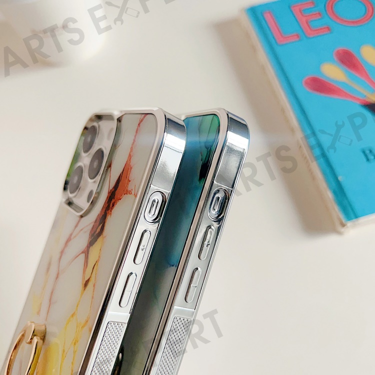 Back Cover for iPhone 14 Pro Max , Ring Kickstand Electroplating Marble Pattern Cell Phone PC+TPU Case - Style D