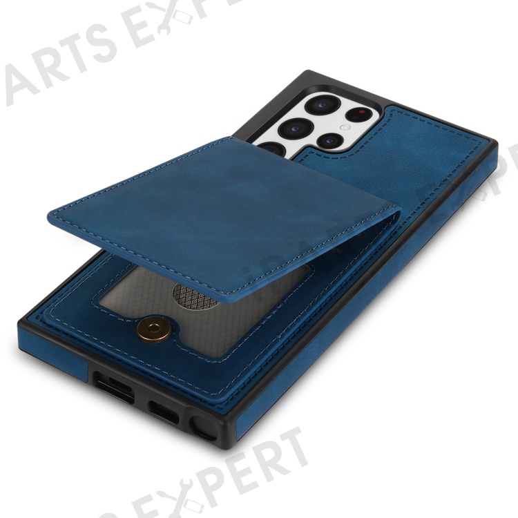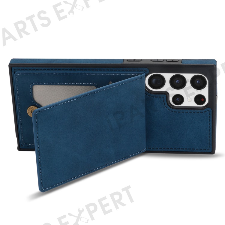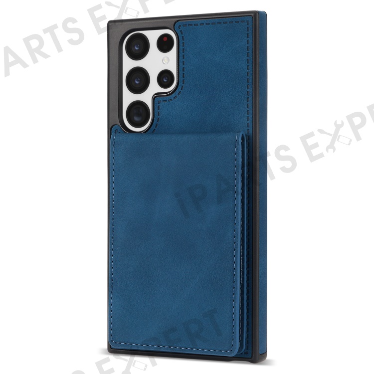 Back Cover for Samsung Galaxy S23 Ultra, Kickstand Design Scratch Proof Solid Color Phone Case RFID Blocking Multiple Card Slots Vertical Flip PU Leather Coated TPU Shell - Blue