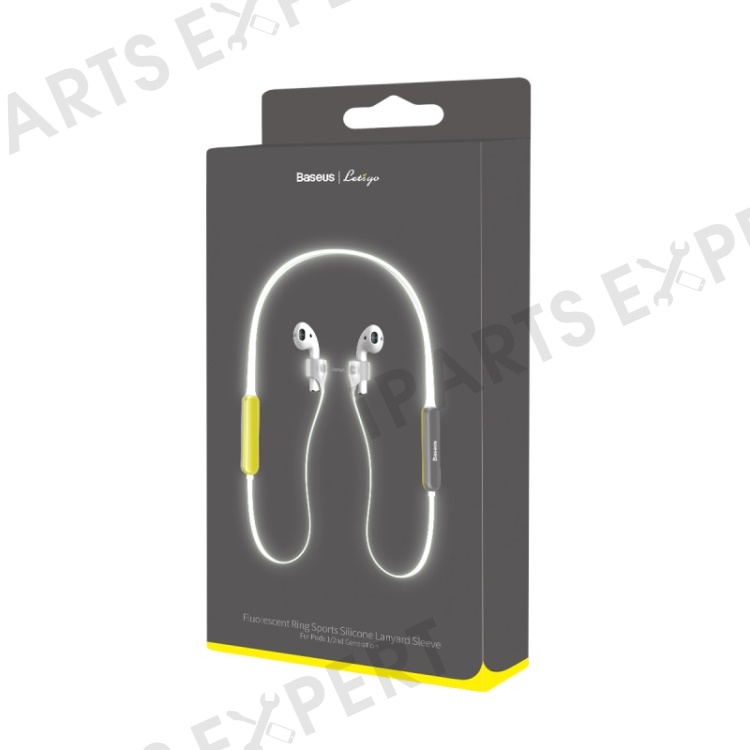 BASEUS Fluorescent Ring Sports Silicone Lanyard Sleeve for Apple AirPods with Charging Case (2019) /AirPods with Wireless Charging Case (2019) / AirPods with Charging Case (2016) - Grey/Yellow