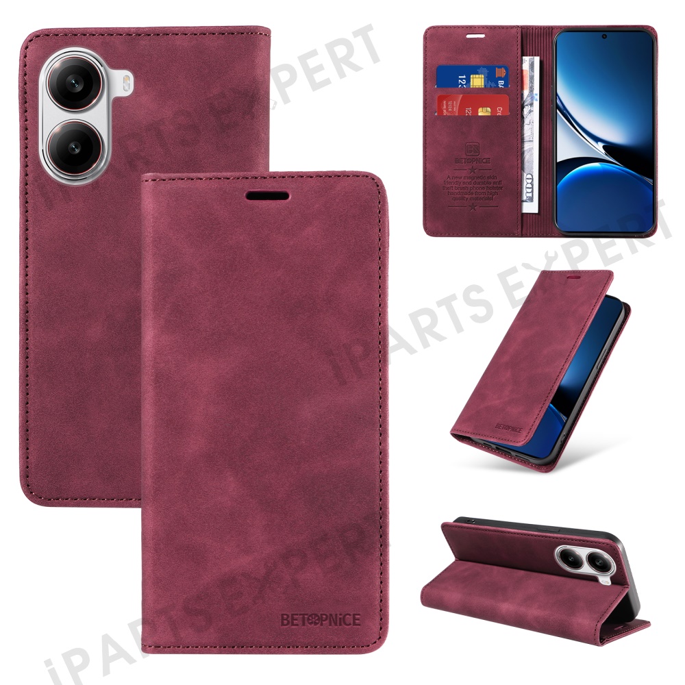BETOPNICE 003 For Xiaomi Redmi Turbo 4 5G / Poco X7 Pro 5G Wallet Case Leather Phone Cover with Stand - Red