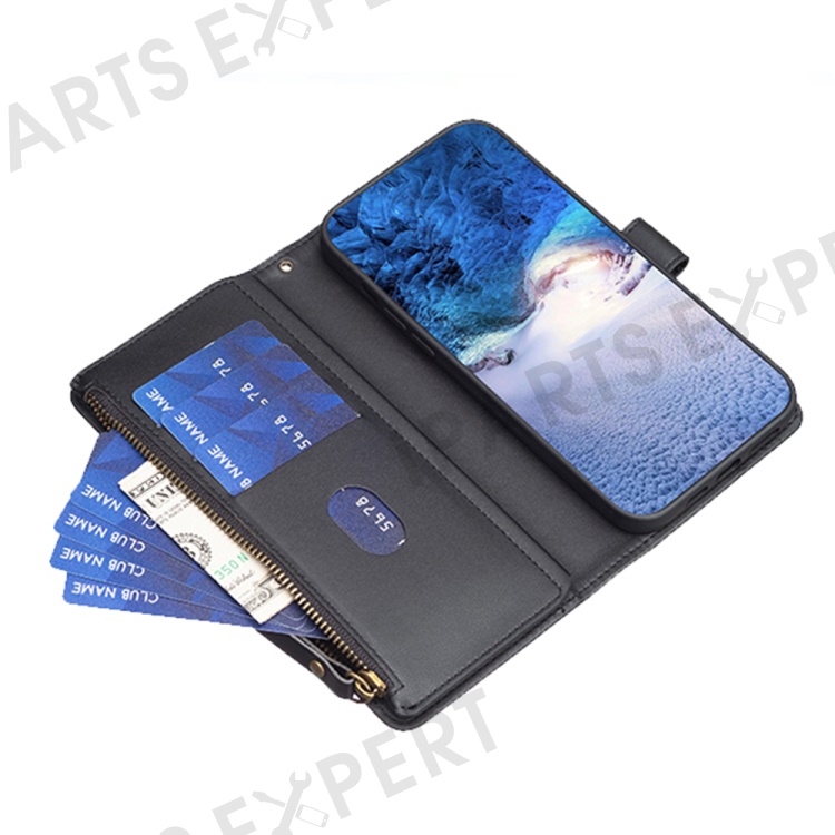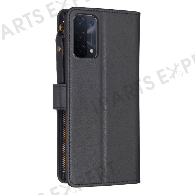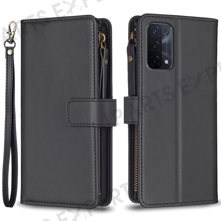 BF Style-19 for Oppo A74 / A93 / A54 5G Zipper Pocket PU Leather Phone Case Wallet Stand Cover - Black
