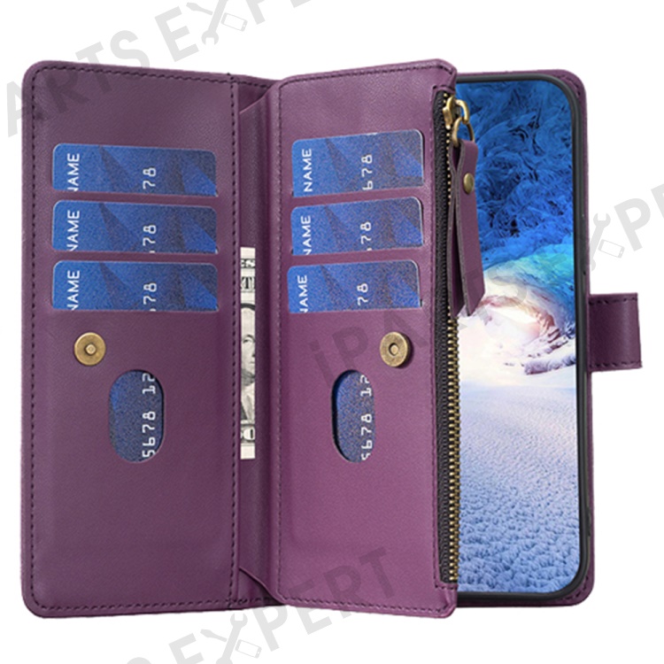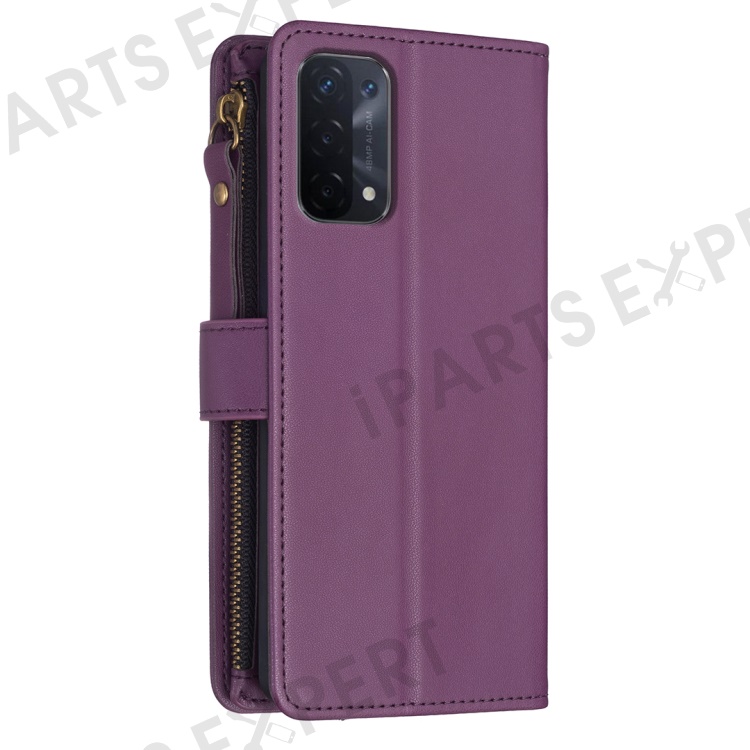 BF Style-19 for Oppo A74 / A93 / A54 5G Zipper Pocket PU Leather Phone Case Wallet Stand Cover - Dark Purple