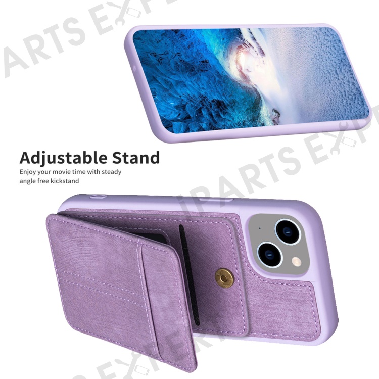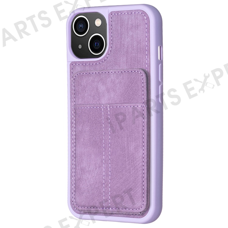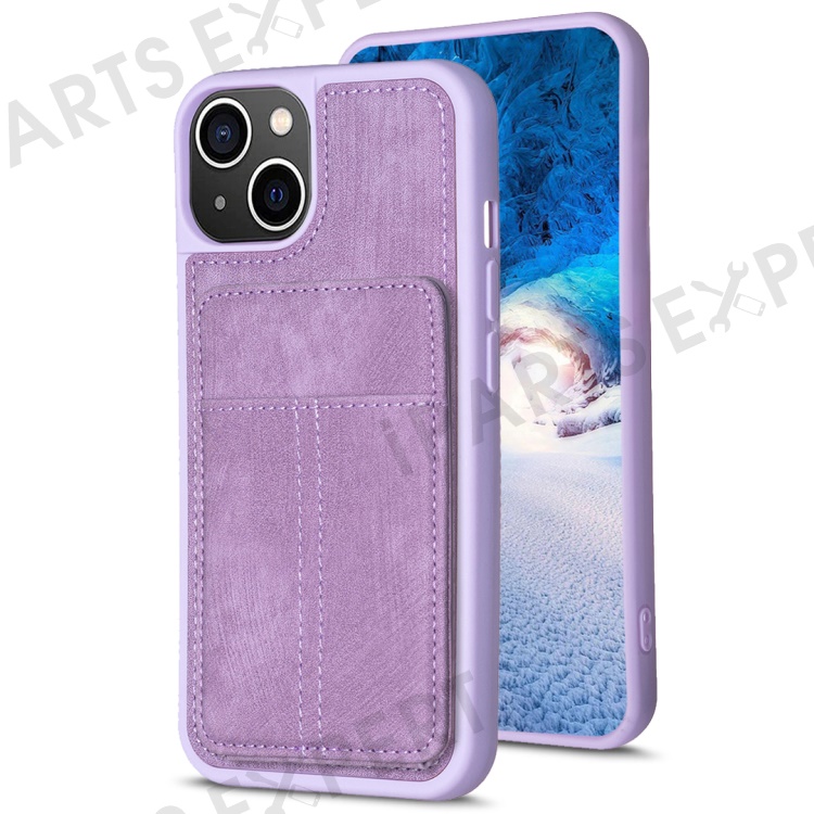 BF28 For iPhone 15 Kickstand Case Matte PU Leather Coated TPU Phone Cover with Card Holder - Purple