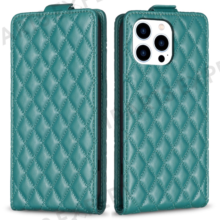 BF30 For iPhone 16 Pro Max Case Rhombus Grid Vertical Flip Leather Phone Cover - Green