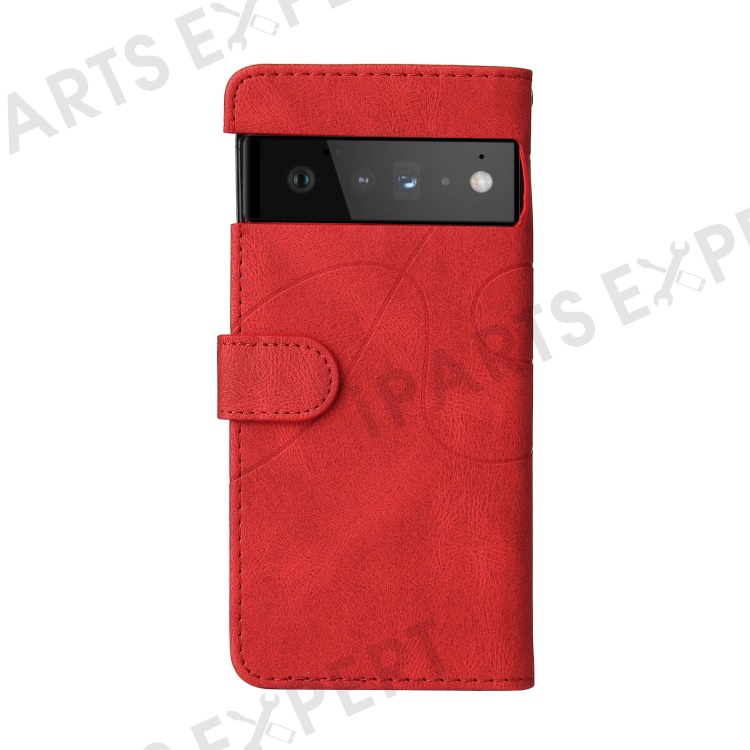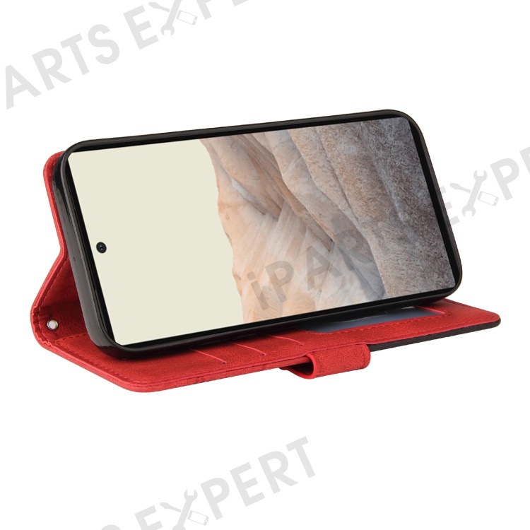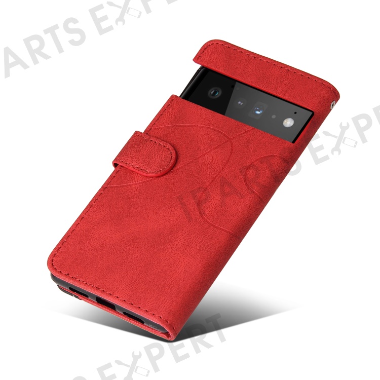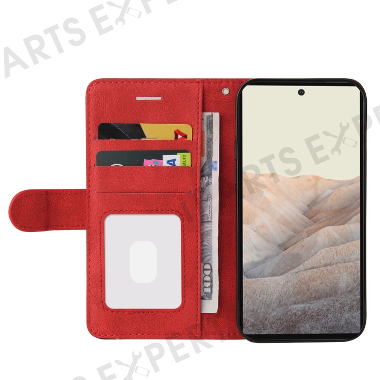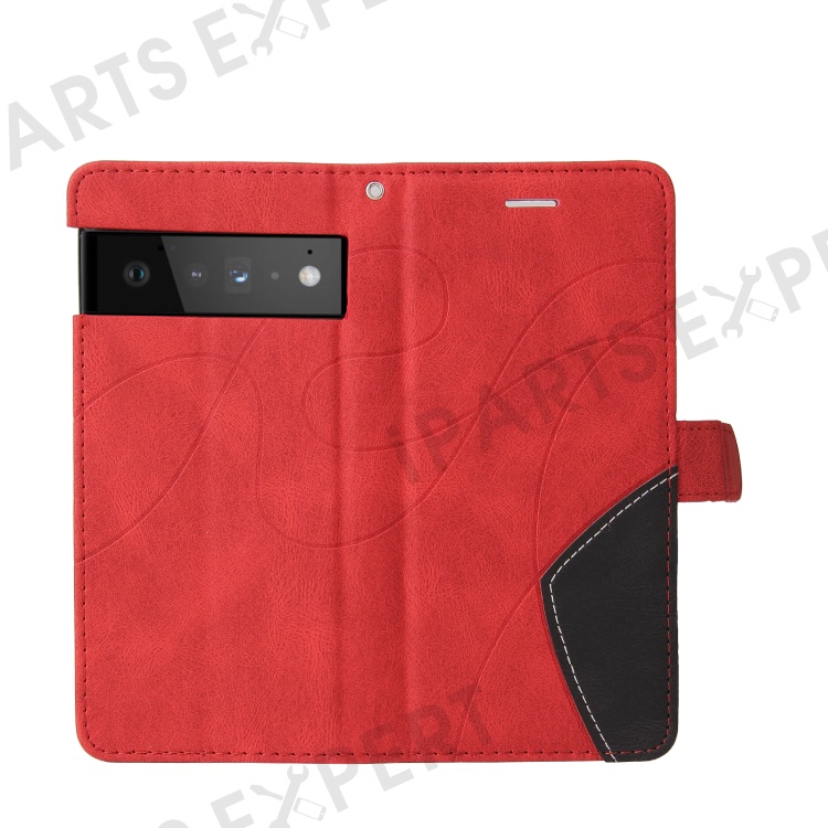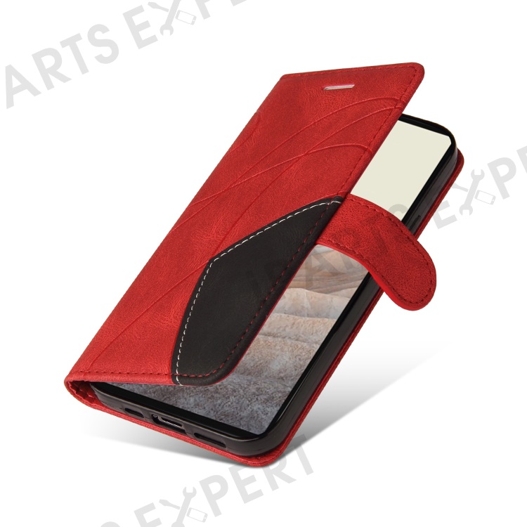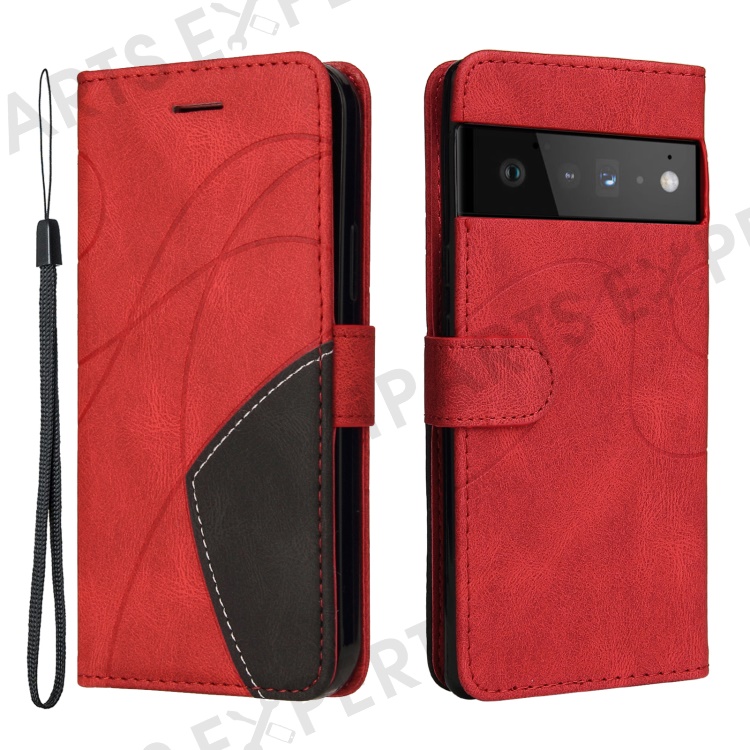 For Google Pixel 6 Leather Case Wallet Stand Color Splicing Phone Cover - Red