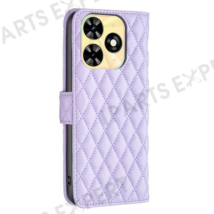 BINFEN COLOR BF Style-14 For Infinix Smart 8 4G Wallet Leather Case Rhombus Grid Pattern - Purple