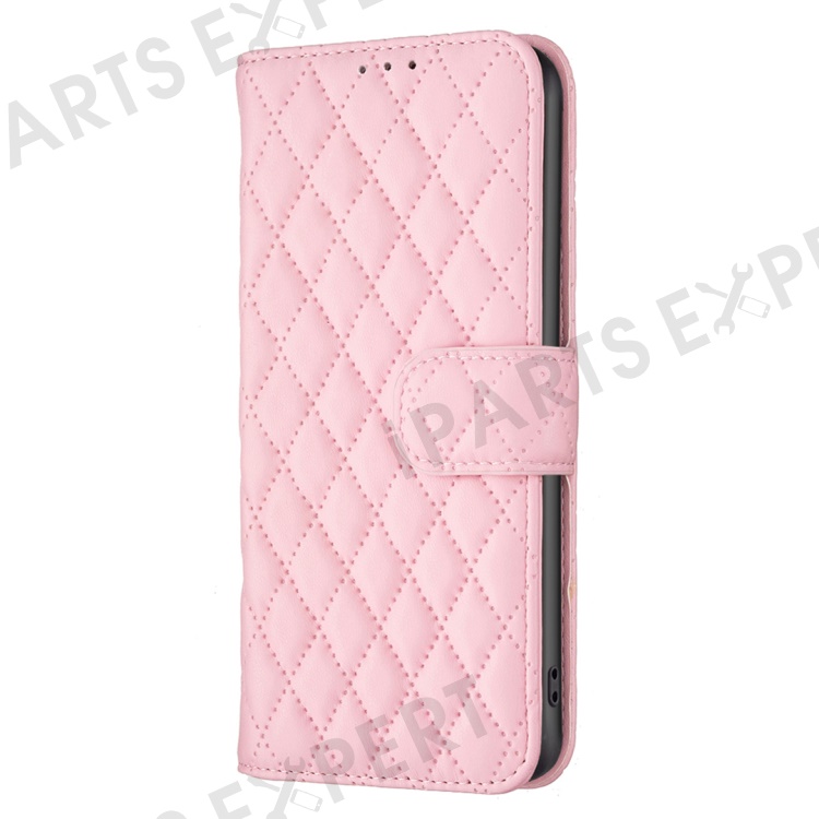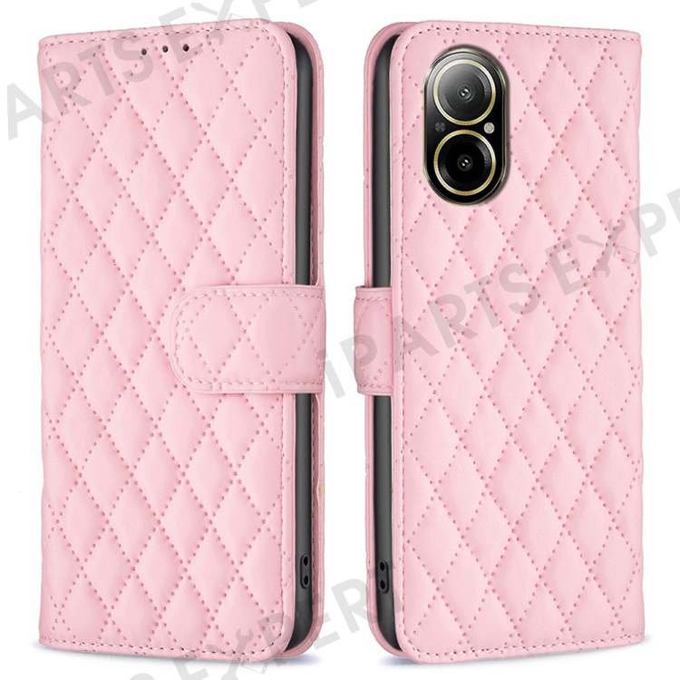 BINFEN COLOR BF Style-14 For Realme C67 4G Case Rhombus Grid Leather Scratch-proof Phone Shell - Pink