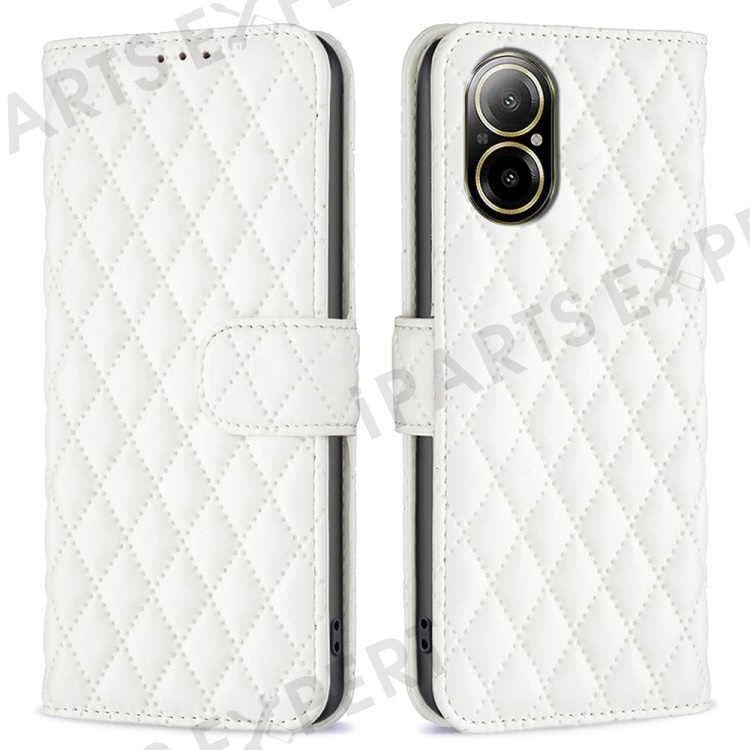 BINFEN COLOR BF Style-14 For Realme C67 4G Case Rhombus Grid Leather Scratch-proof Phone Shell - White